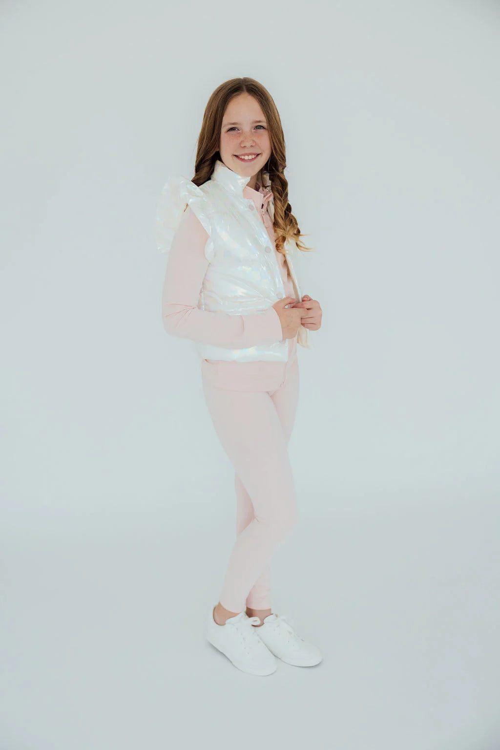 It’s finally here! An active line made for dance, cheer, yoga workouts or just lounging at home. She will love the comfort and stretch of this legging. You will love the easy care. The line is made to mix and match to fit her personality.
