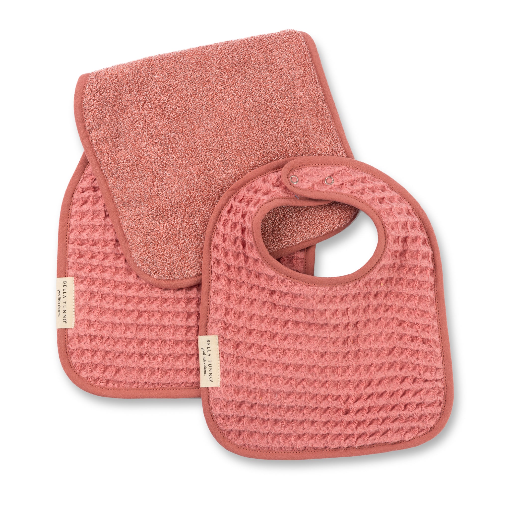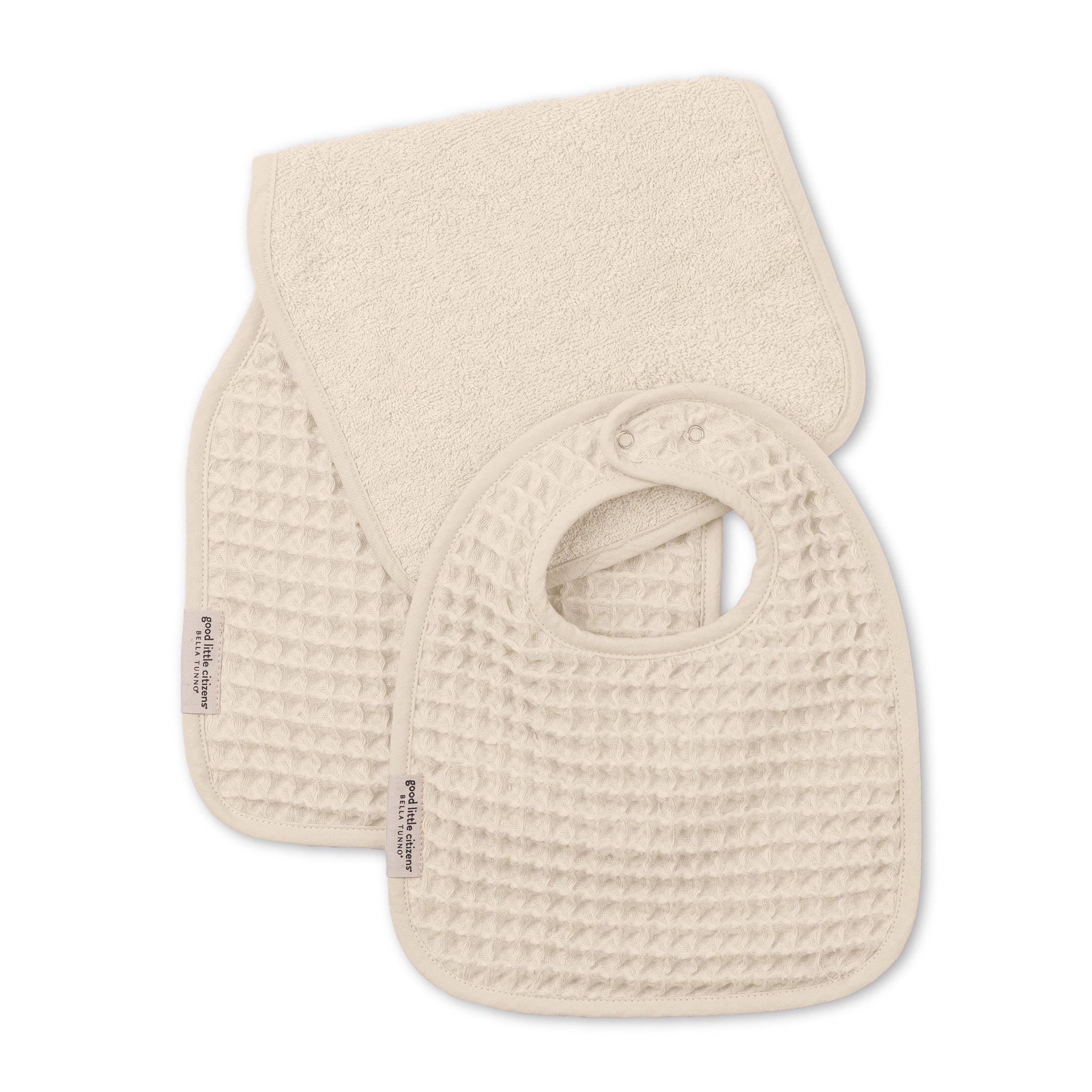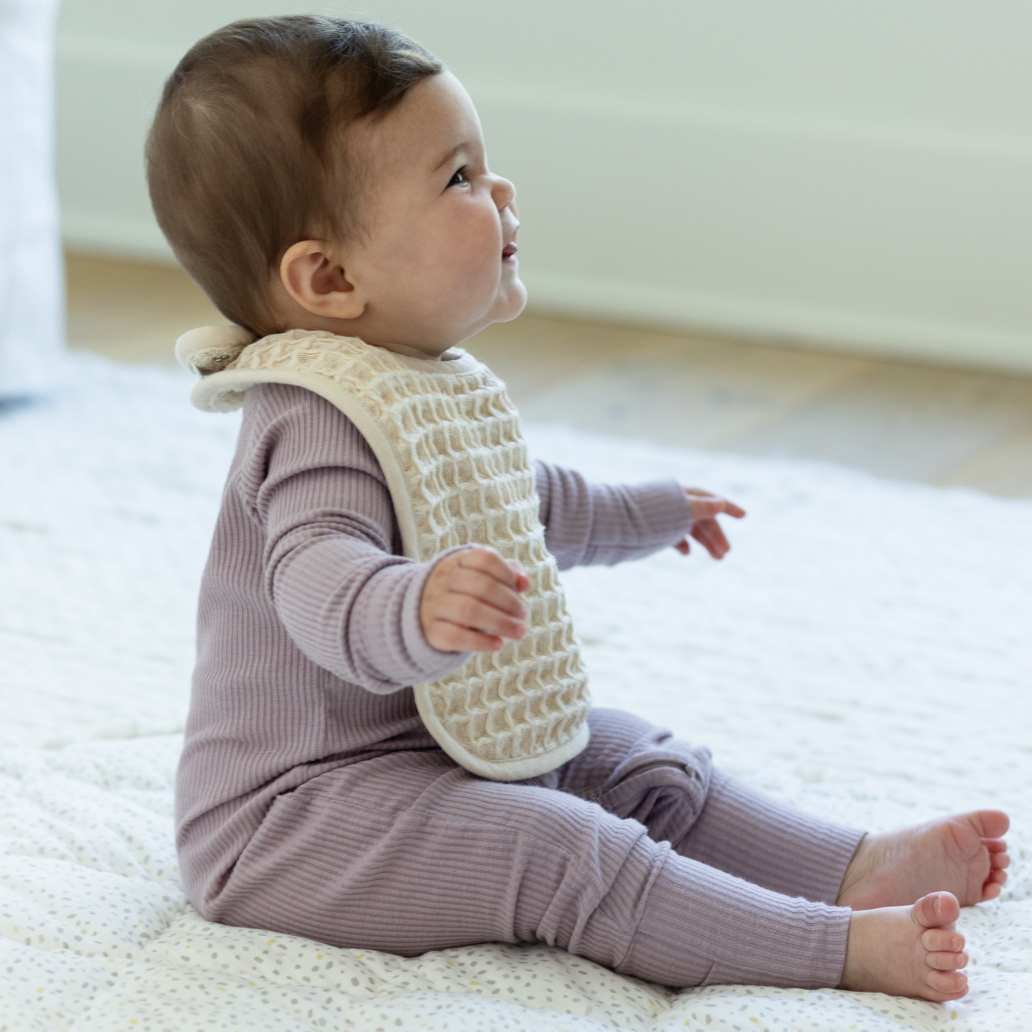Keep yourself and baby clean, comfortable, and colorful with our reversible burp cloth and bib. Featuring our luxe lofty waffle weave on one side and a soft, absorbent terry on the other. All fabrics are OEKO-TEX® certified and sustainably sourced, but the commitment to our environment goes deeper - our recycled polyester is made from plastic bottles removed from oceans and landfills. Each Reversible Bib and Burp set keeps 4 plastic bottles out of landfills.