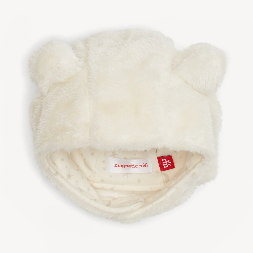 Our minky Magnetic Easy Close Cozy Cap is so warm and comfy, made from super-soft minky fleece and lined with organic cotton. A hidden magnetic closure secures the hat in place quickly and quietly, and it won't irritate baby's chin. Pro tip: Double down on coordination with matching mittens.