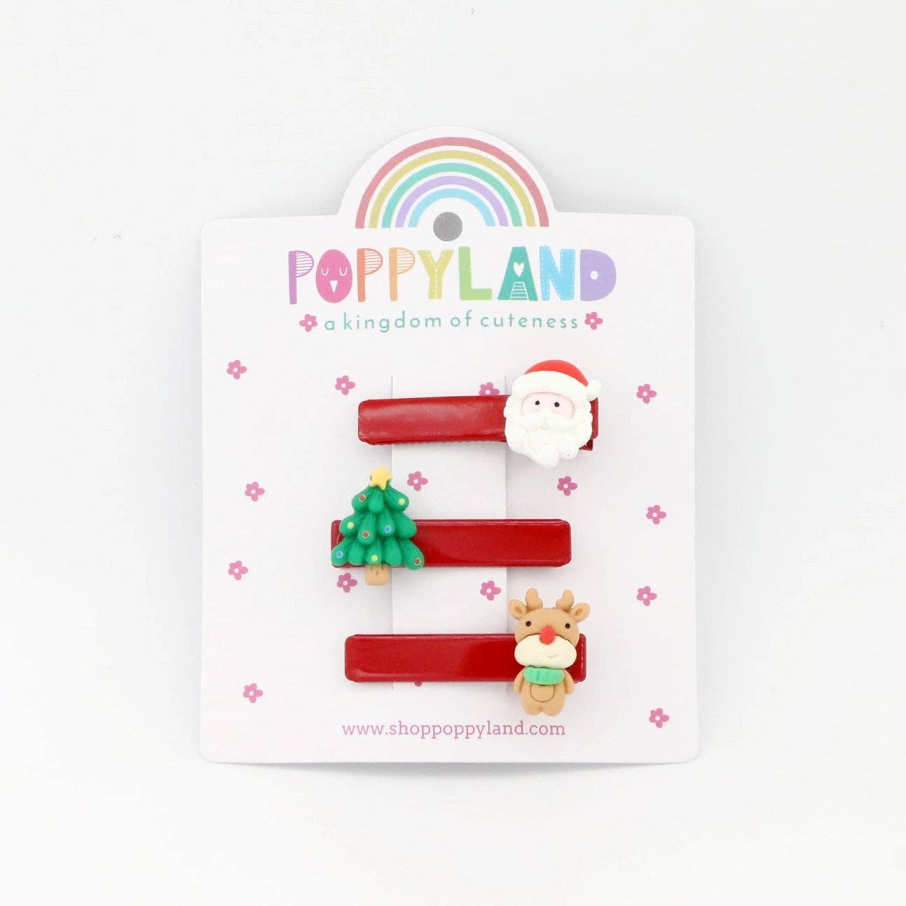 Discover the magic of the season with our North Pole Hair Pins at Poppyland, a kingdom of cuteness. Our North Pole hair pins are fun and festive. Featuring Santa, Rudolph and a tree, these will really get you in the holiday spirit! Perfect for adding a cheerful touch to any outfit, these accessories embody the whimsical charm and quality you’ve come to expect from Poppyland. Get ready to celebrate with style and spread holiday joy everywhere you go!