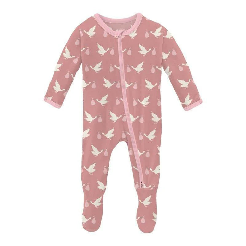 Bamboo 2-Way Zipper Footie | Blush Storks