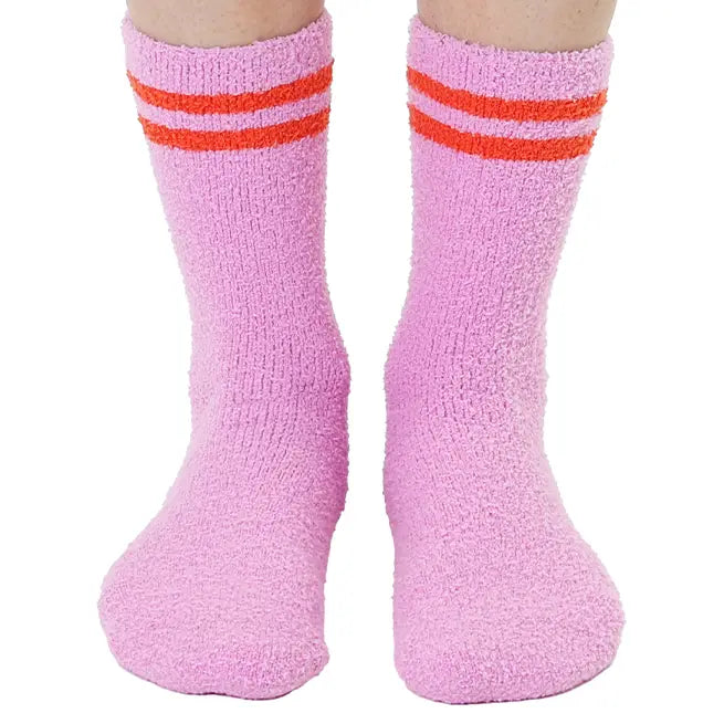 These socks offer the ultimate comfort and style by combining functionality with fashionable flair. Designed to provide maximum warmth and coziness, these fuzzy socks also feature a playful phrase on the bottoms in grip material to prevent slipping. Perfect for hanging out at home or adding a touch of luxury to your everyday wear. These socks are not only a treat for yourself but also make a delightful gift for friends and loved ones.