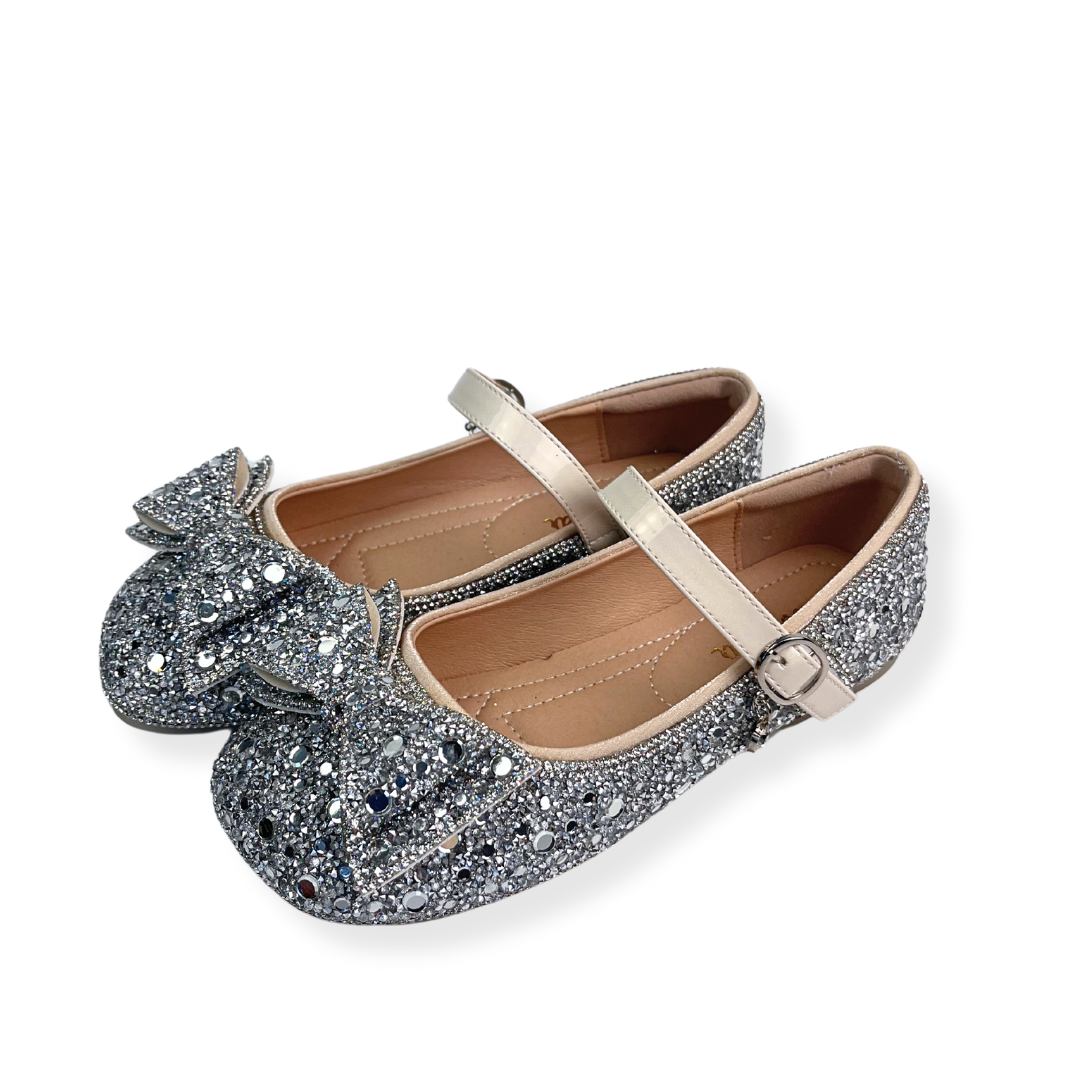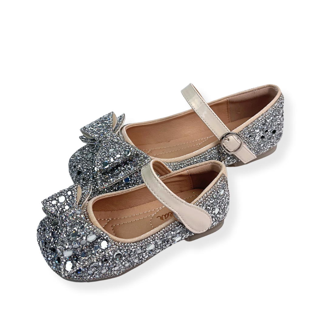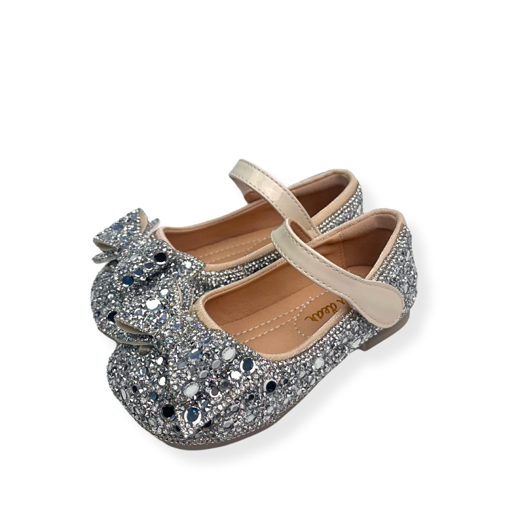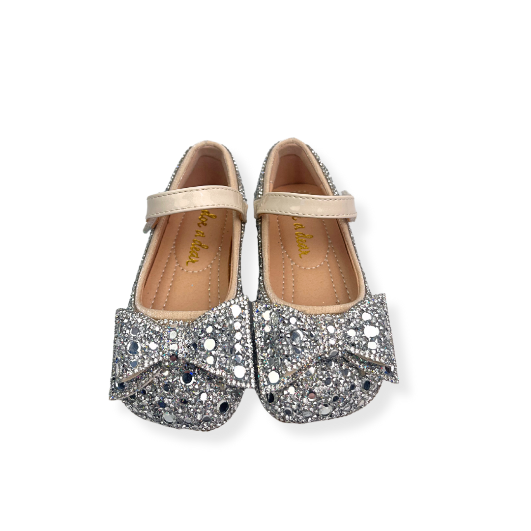 These trendy flats are the perfect blend of comfort and style for your child. The charming silver bowtie embellishment makes these shoes a versatile addition to any wardrobe. Suitable for both casual and formal occasions, your little fashionista can step out in style. With Doe a Dear, fashion is fun and accessible for kids.
