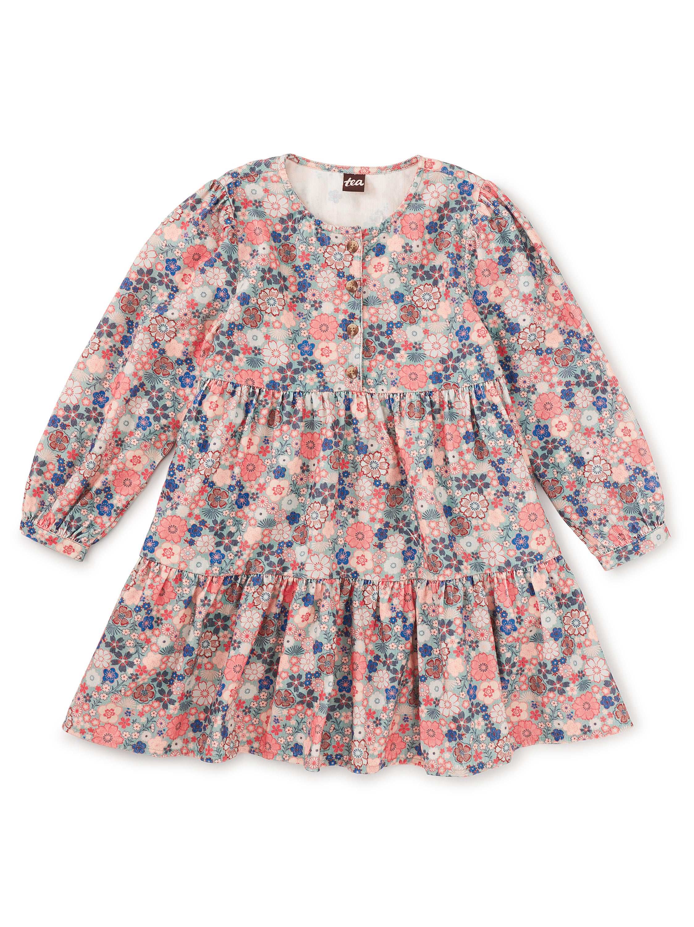 A timeless piece with modern charm, this corduroy shirtdress is designed to be cherished and passed down. The soft floral print, blouson sleeves, and tiered skirt bring a touch of elegance, while practical details like side seam pockets and a functional placket keep it easy for everyday wear.