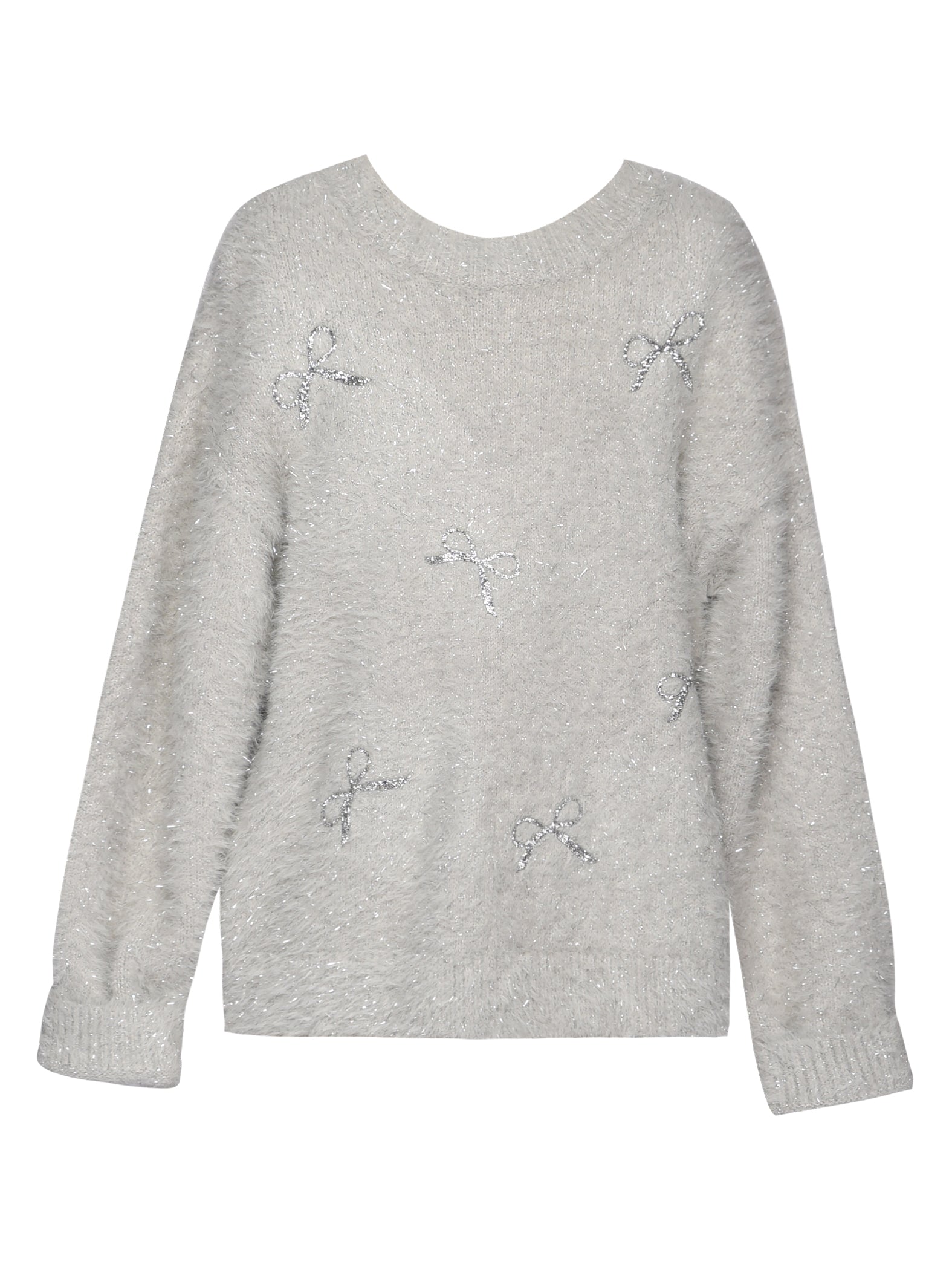 Fuzzy Metallic Sweater w/ Sequin Bows