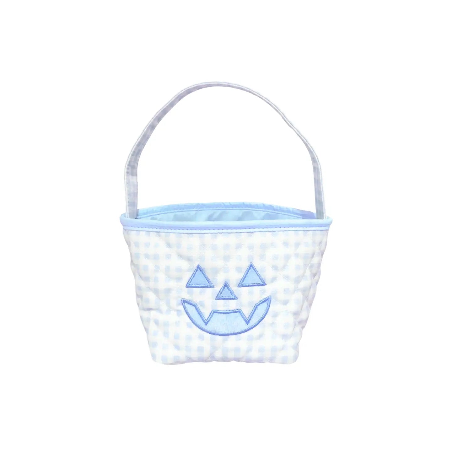 The Petite Pumpkin Tote in Blue from Bits & Bows is a delightful addition to the Bits & Bows Halloween Collection. This adorable pastel tote is adorned with blue jack-o-lantern velvet applique to add Halloween sweetness to every little boy's trick-or-treat. Pairs perfectly with any playfully polished costume for ultimate cuteness.