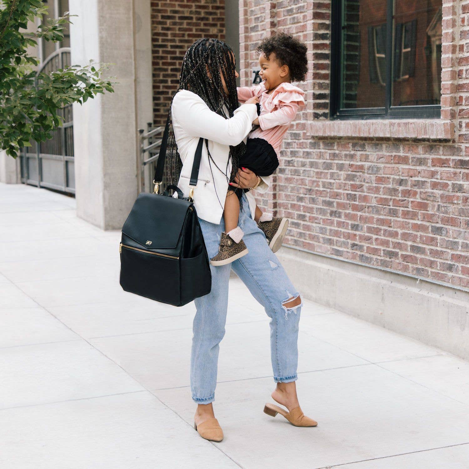 We took your favorite diaper bag and improved it! The Diaper Bag by Freshly Picked was designed for moms by moms. We conducted focus groups across the US and identified what moms really want in a diaper bag: large capacity, ease of use, durability, and style. We’ve addressed each of these areas to create the perfect diaper bag that is both functional and beautiful. It now has padded shoulder straps, a mom compartment, and mesh interior pockets! Features * Padded adjustable straps * Interior mom pocket with magnet closure * Bigger front pocket * Mesh interior pockets for easier visibility * Interior 6" keyclip * Machine washable changing pad * Metal feet on bottom so bag never touches the ground * 12 pockets with a spacious central compartment for larger items * No side snaps, sides are stitched in a way where the bag naturally folds on itself * Insulated interior pocket * Wearable 3 ways: backpack, cross-body, or purse