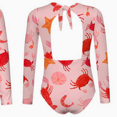 One-piece swimsuit with long sleeves for sun protection, the fabric has the highest ultraviolet protection factor, UPF50+ wich means the fabric creates a barrier against the suns UV rays. Made in Colombia