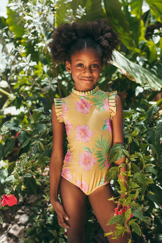 Discover our famous alisson swimsuit, loved by all for its elegance and for how stunning it looks when worn. With short sleeve and neck ruffles and back zipper. This swimsuit is an absolute gem! Made in Colombia