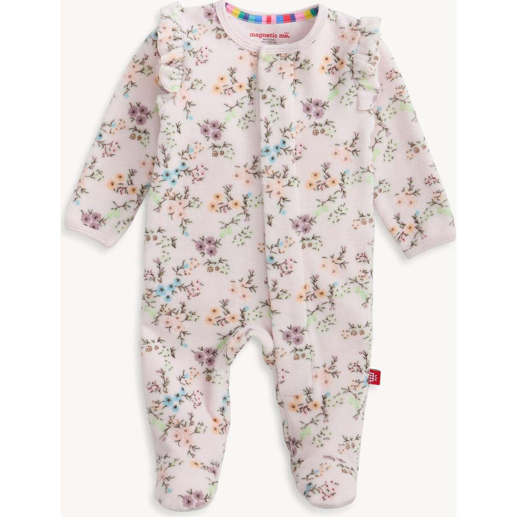 Our velour Footie, also known as a sleeper, gets baby warmed up and dressed quickly with magnetic closures down the front. It's the best outfit to wear when it gets chillysoft, plush, and the perfect dose of cozy whether you’re at home or out and about. Velvety soft cotton designed to provide cozy warmth during cooler months. Magnetic closures make for quick, easy dressing and diaper changes. SewSafe guarantees magnets are safely sealed and stitched inside a pouch, then between multiple layers of fabric, making them completely inaccessible to children. Magnets line the seam from the neck to upper thigh for sizes up to 0-3m & from neck to crotch for sizes 3-6m and up. Easy care, machine wash.