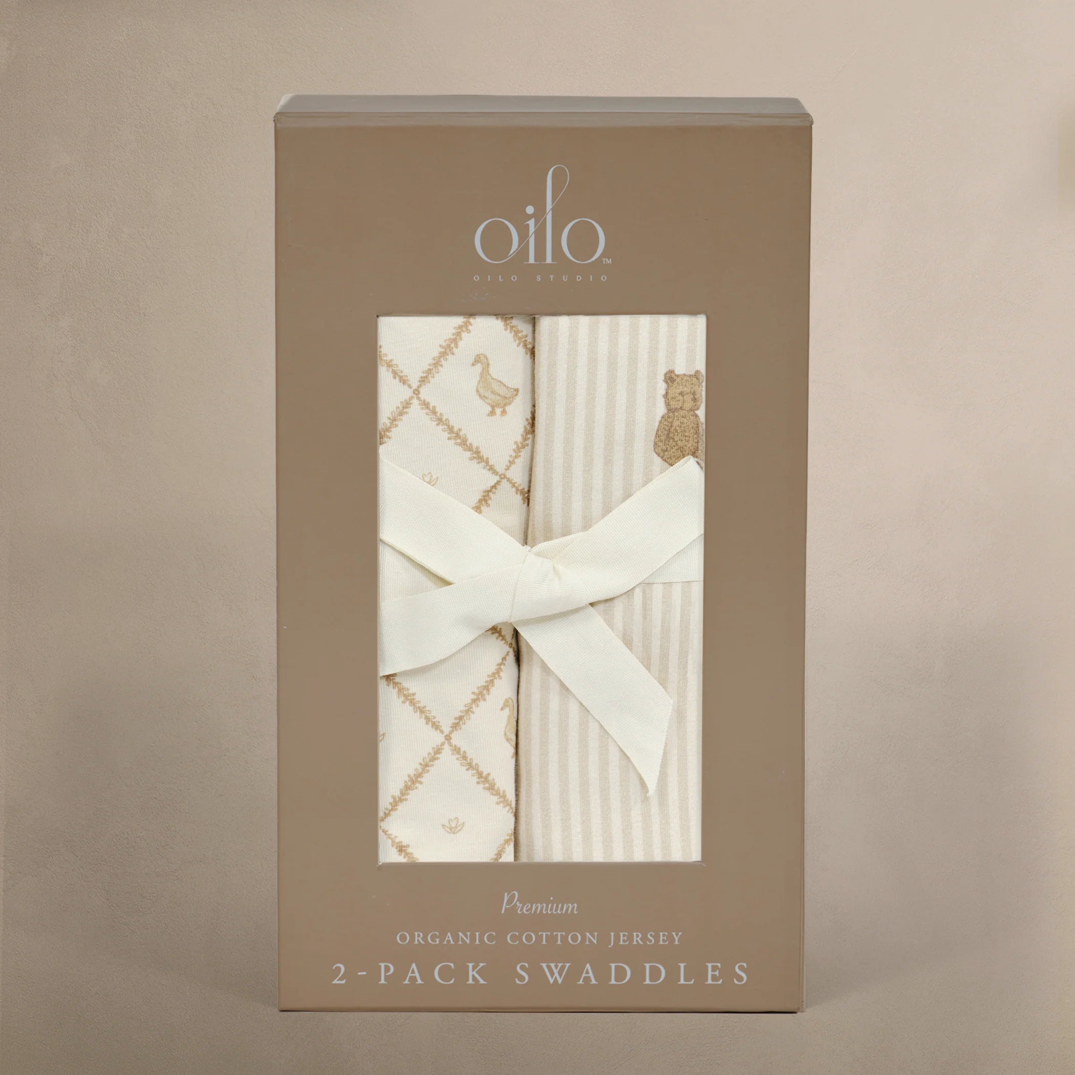 The stretchiness of Oilo's jersey swaddle allows for a secure but gentle swaddle, keeping little ones wrapped up without feeling overly restrictive. Our jersey swaddle blankets are crafted from an organic cotton knit fabric, which naturally has a denser, heavier feel compared to muslin, which adds weight and provides a cozy, cocoon-like effect, helping babies feel more secure, much like being gently hugged!