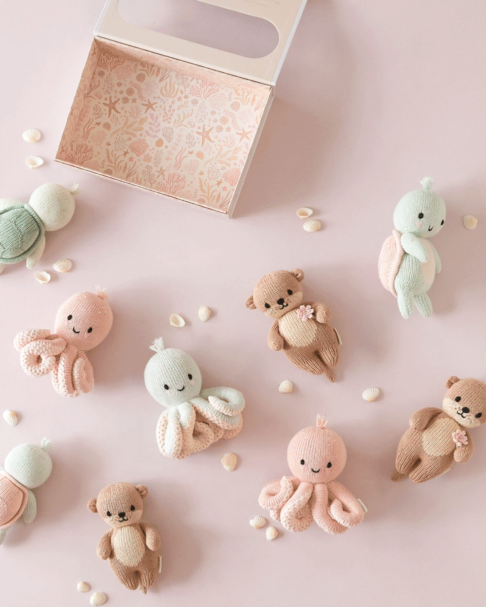 Absolutely adorable and oh so collectible! Our hand-knit baby animals are the perfect way to start or grow your cuddle+kind collection. Every heirloom-quality baby animal is lovingly handcrafted from natural Peruvian cotton yarn, with carefully considered details. At just a little bigger than your hand, they’re the softest, most lovable companions we could imagine. Your customers will love collecting them all!