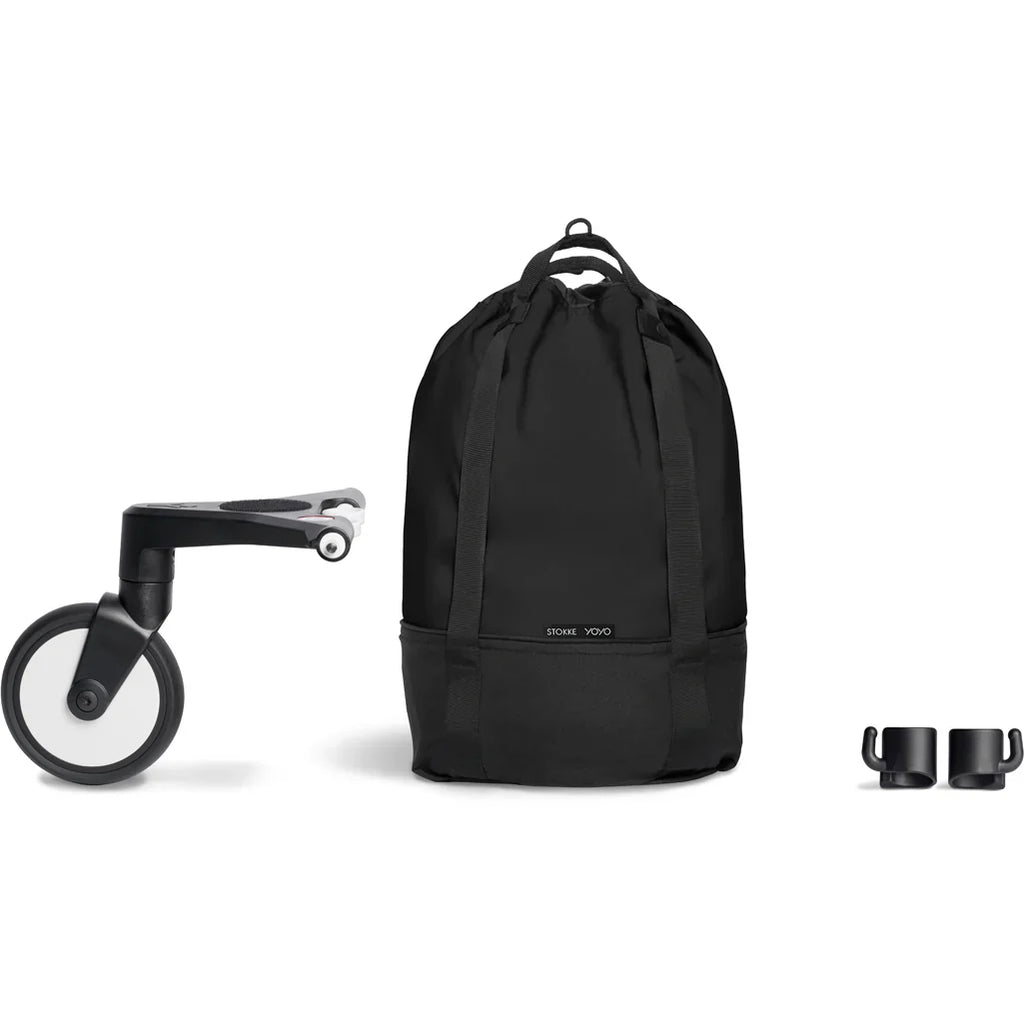 YOYO bag hooks onto the YOYO stroller in seconds and, thanks to its wheel, supports an additional 10 kg (22 lbs) without extra efforts. Loaded with groceries or your gear, your YOYO² remains manoeuvrable, light, completely stable and always navigable with one hand. An end to those strollers that tip over under the weight of bags hanging from the handlebars!