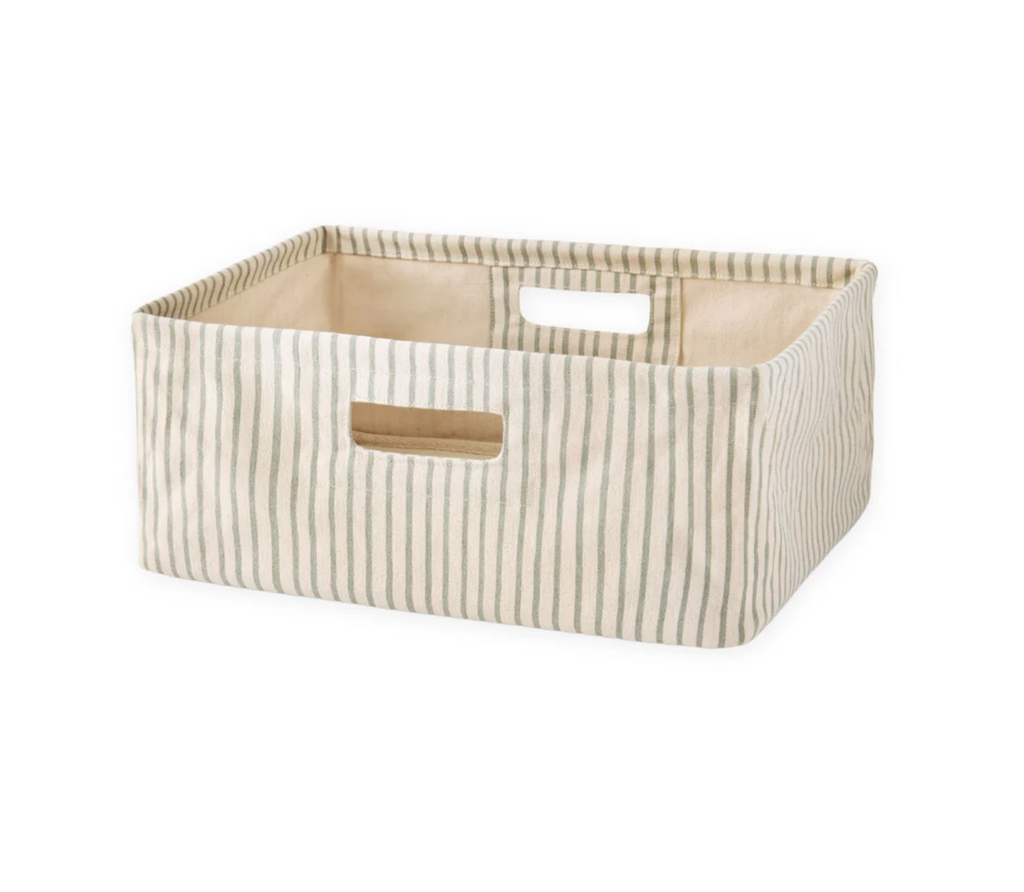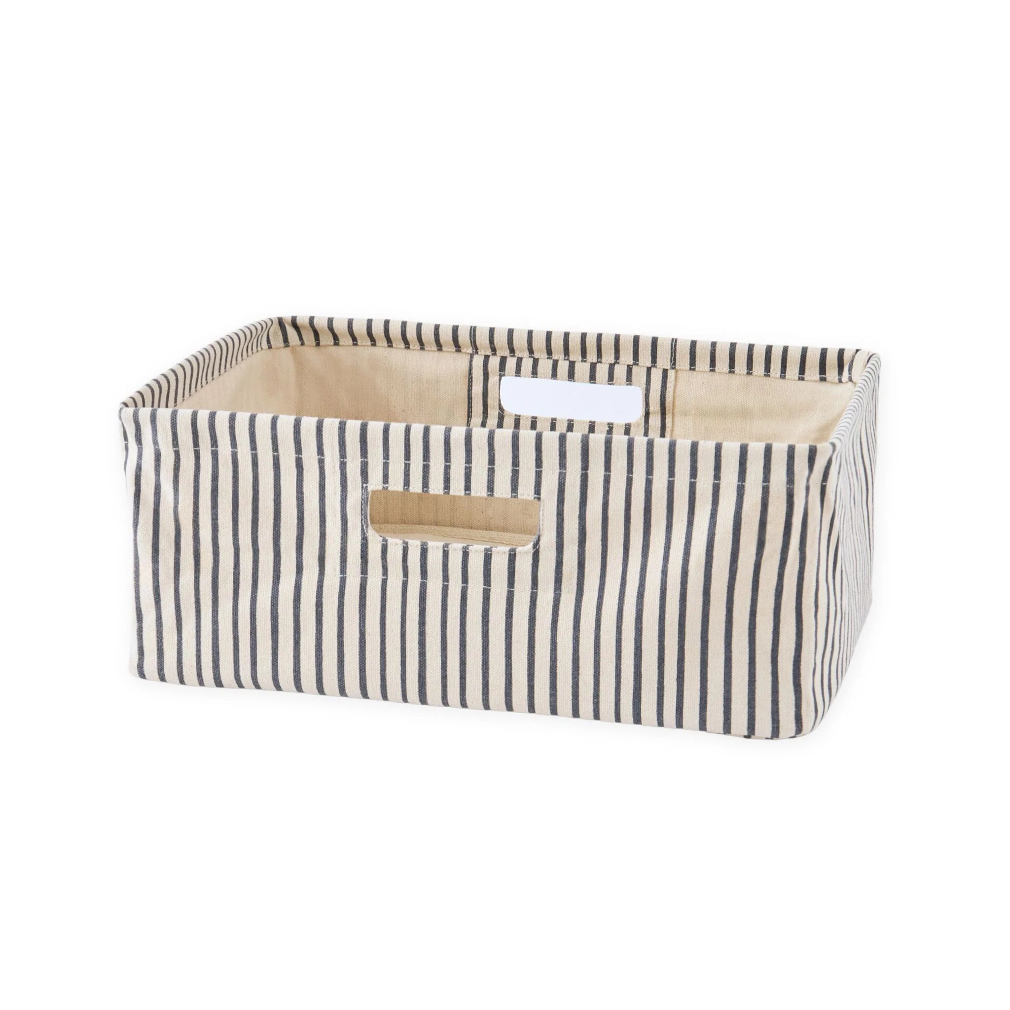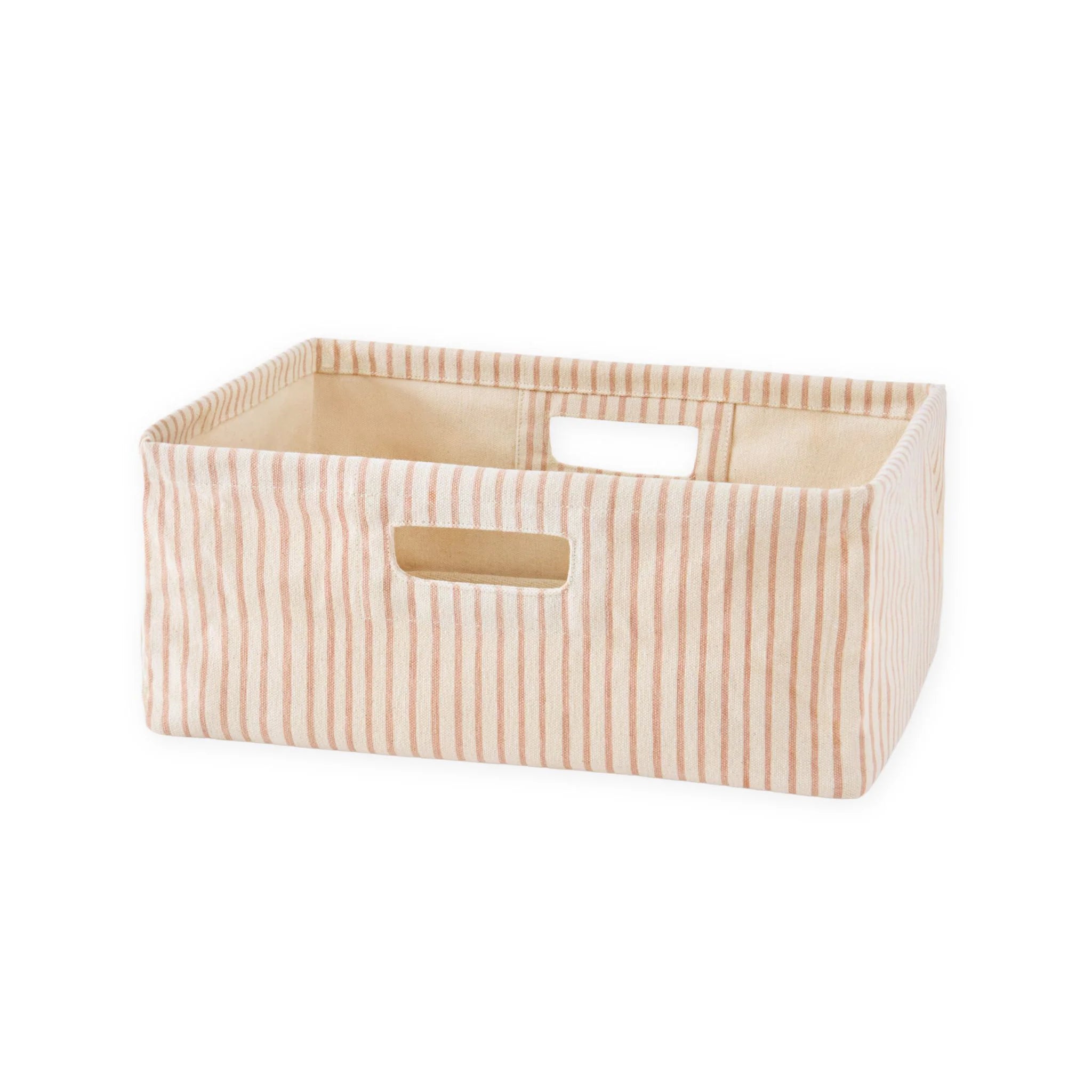 Embrace your unused space with Hideaway Storage! Designed in our signature stripes and made in a durable cotton canvas, the two sizes nest together to fit perfectly under a crib or bed. The top rim is also wired with handles, so they're sturdy and easy to move.