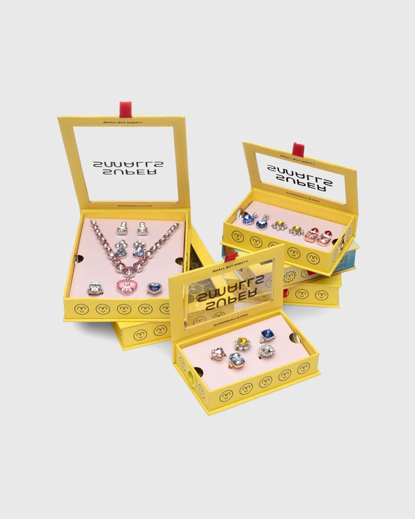 This set is all about pastel elegance! From a book report presentation to the bff’s birthday party, these extra-sparkly jewels will carry you throughout your day with confidence and class. Our original Mega Set and continued #1 best-seller (!) features a pink heart pendant necklace and an added bonus of not one, but TWO rings and earring sets! Mix-and-match or wear ‘em all for a fun, maximalist moment. *Small parts, not intended for children under 3 years
