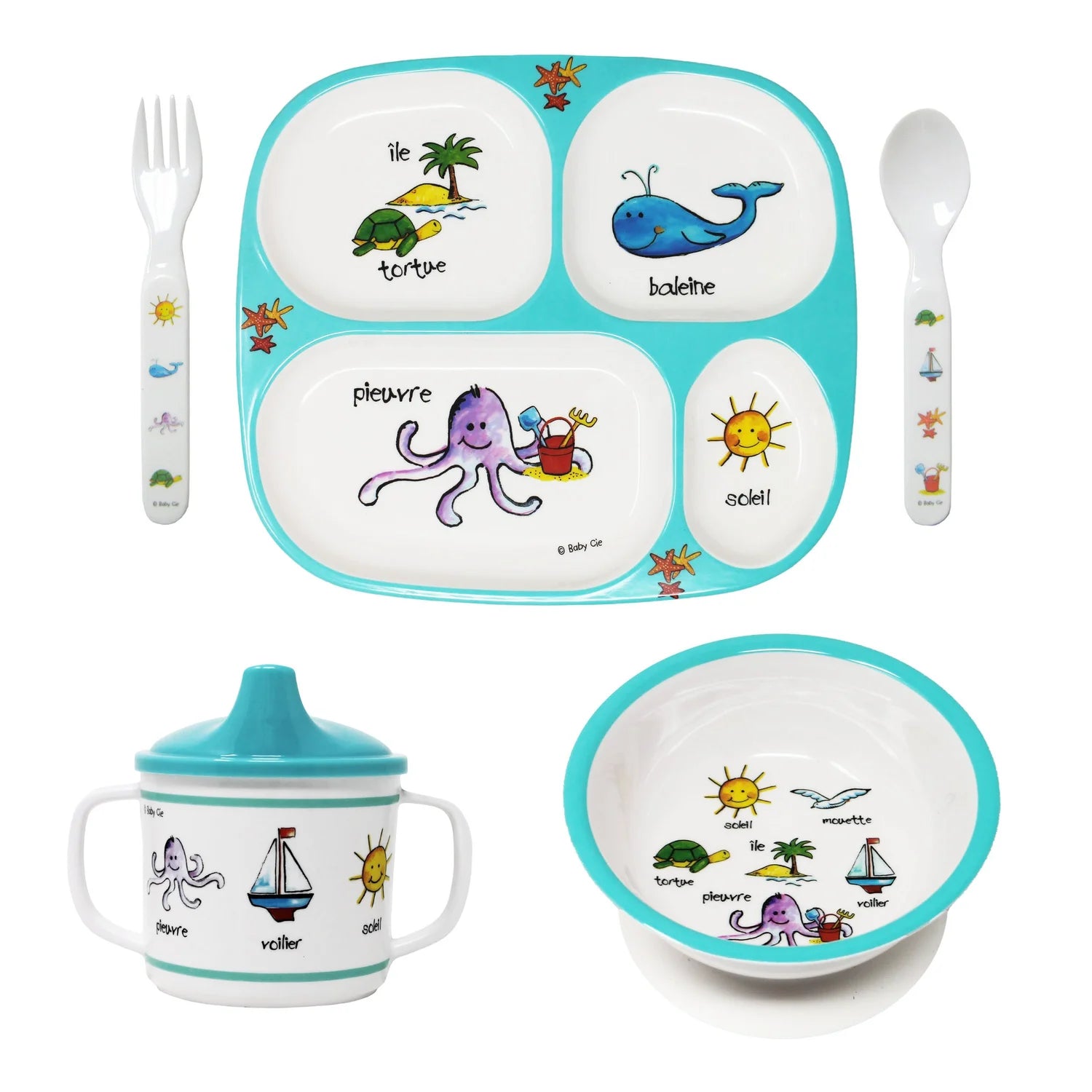 Melamine Fork/Spoon Set | Ocean Animals