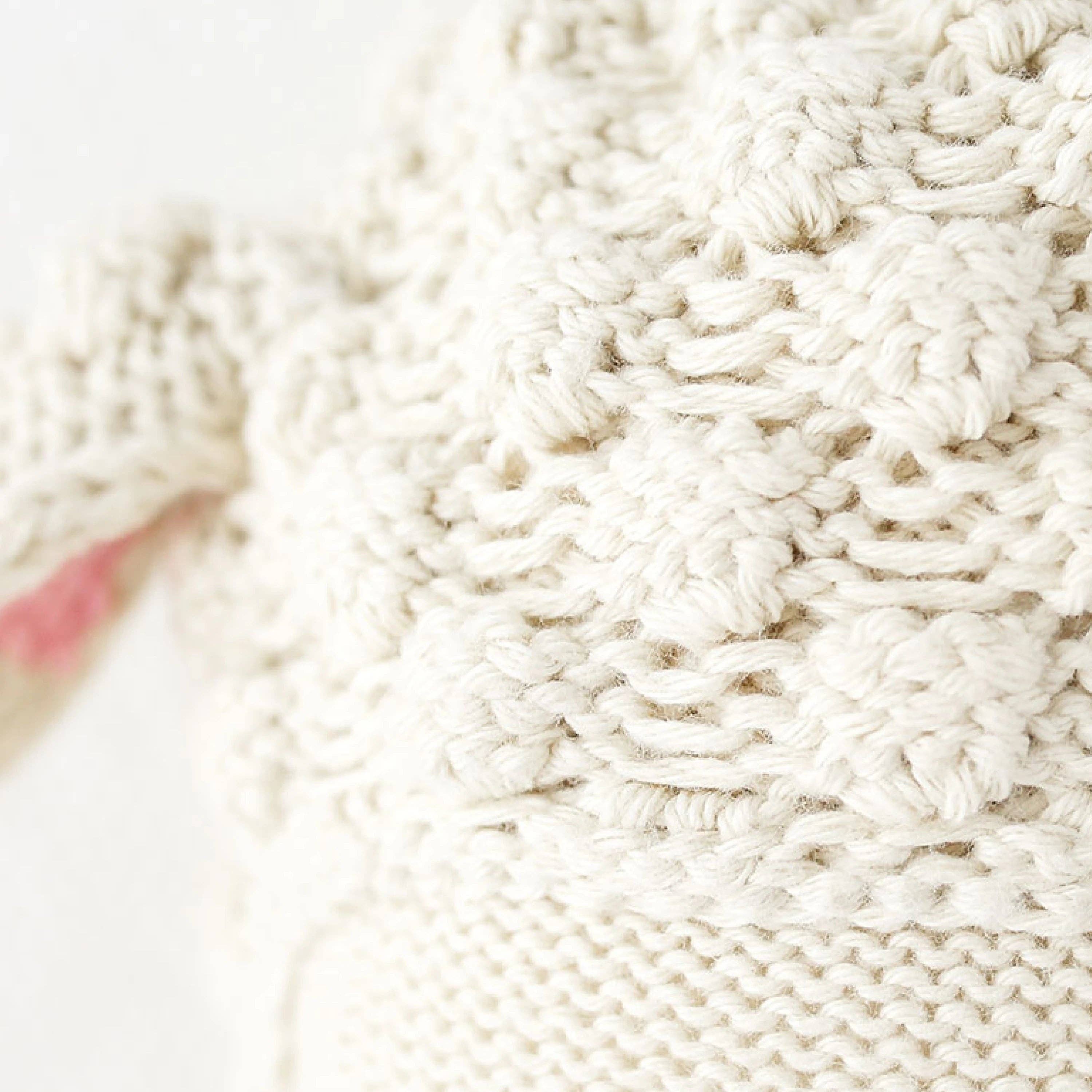 I was born on a fluffy white cloud… or at least, that’s what my wool feels like! I love to bounce, twirl, and chase butterflies across the meadow. My friends say I have the brightest imagination, and I believe every day should be filled with adventure, wonder, and a little bit of magic. Let’s be best buds and make the world a brighter, more joyful place together! Favorite quote: “Happiness is a hop, skip, and a dream away!” Goal: To provide 1 million meals a year. 1 doll provides 10 meals to children in North America and around the world. Fabric and Features: * Hand knit doll with premium 100% cotton yarn * High stitch count for durability and softness * Premium felt and knit details * Stuffed with hypoallergenic polyfill to be the ideal cuddle weight * Safe + non-toxic: US + Canadian safety standard certified * Little - 13". * Handmade in Peru