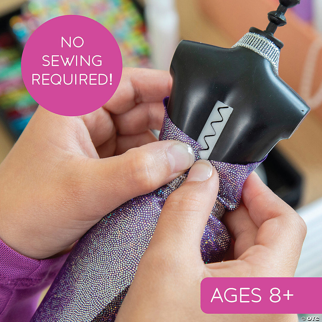 Aspiring fashion designers, bring your clothing creations to life! This comprehensive fashion designer set includes over 450 fabrics, a versatile sketchbook, easy-to-follow dress patterns and essential design tools to turn your vision into reality — all with no sewing required. Tailored for various skill levels, you can sketch your dream dresses, use the patterns to shape fabrics and display your masterpieces on mini mannequins, using the custom backdrop on the box to set the stage for a dazzling fashion show. Browse the robust guidebook to catch a glimpse into the fashion design profession; learn fundamental design skills like sketching ideas, adding details, layering fabrics and basic sewing skills and discover cool fashion design tricks like making a mood board, measuring in heads and more.