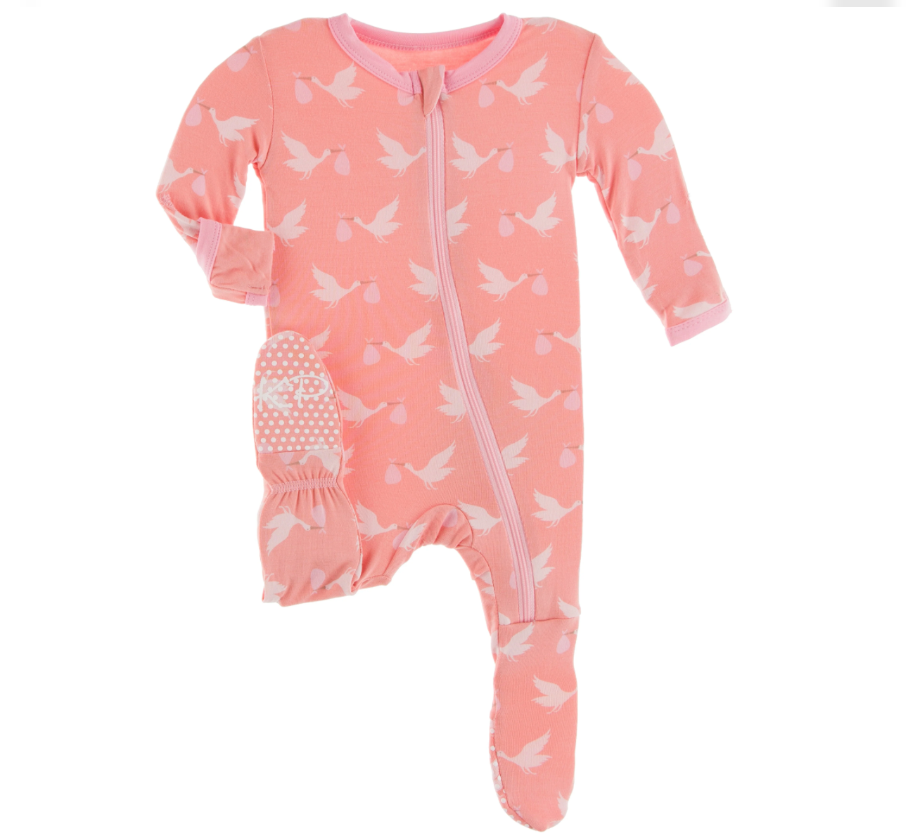 Bamboo 2-Way Zipper Footie | Blush Storks