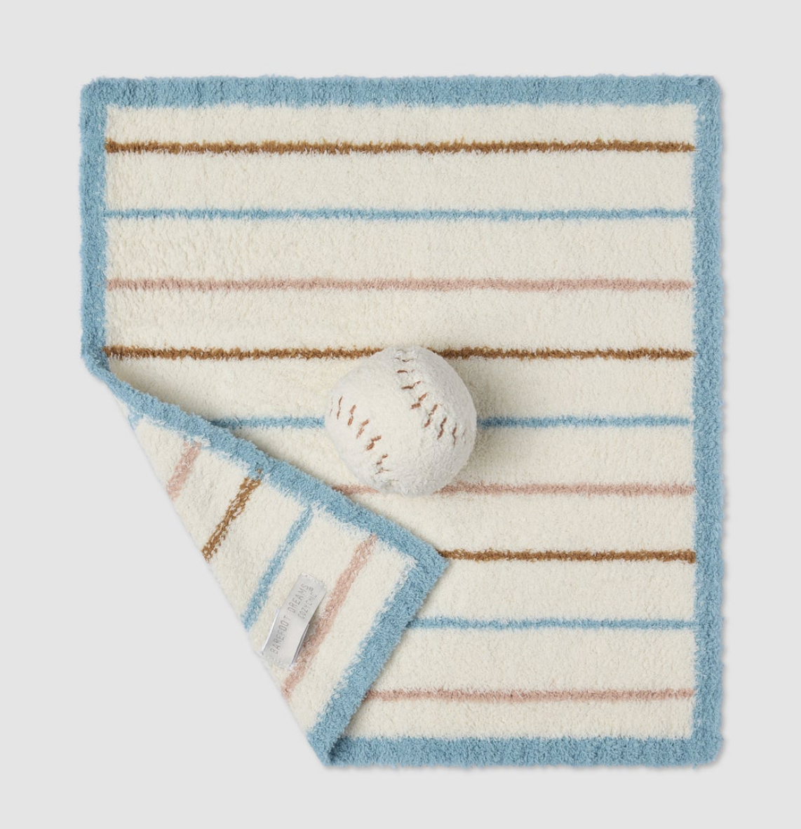 Bring ballpark fun to cuddle time with our CozyChic® Play Ball Lovey — a playful mix of comfort and team spirit for your littlest MVP. This baseball-shaped plush figurine is attached to a super-soft mini blanket featuring multi-colored stripes and a cozy, solid-colored ribbed border, making it easy for little hands to grasp and snuggle. A “LET’S GO!” patch sewn onto the corner adds a sporty, go-team touch — perfect for playtime at home or stroller adventures. Made from our signature CozyChic® fabric, this lovey is irresistibly soft, soothing, and designed for tiny fans in training. Imported.