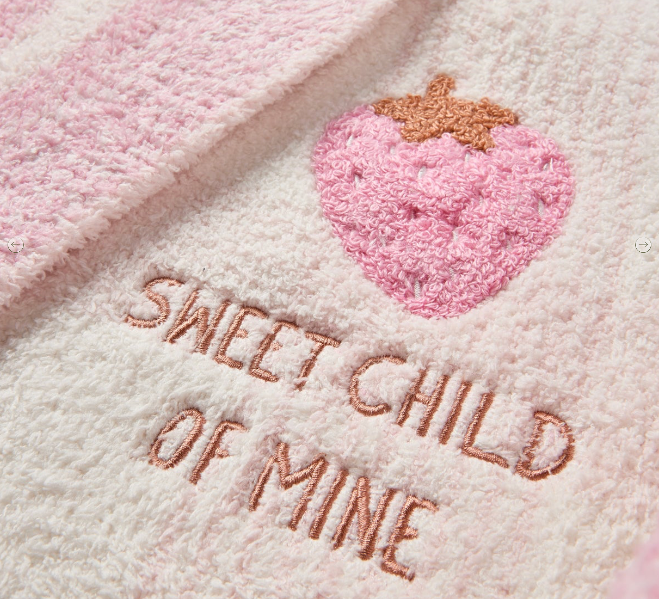 Wrap your little one in sweetness with our CozyChic® Strawberry Stroller Blanket. Featuring a nostalgic reverse jacquard knit with a playful wavy border and soft plaid center design, this blanket is both heartwarming and visually delightful. Embroidered with the endearing phrase “SWEET CHILD OF MINE”, it also showcases a soft loop-embroidered strawberry motif — adding a touch of texture and whimsy to this cozy essential. Measures 30" x 40".