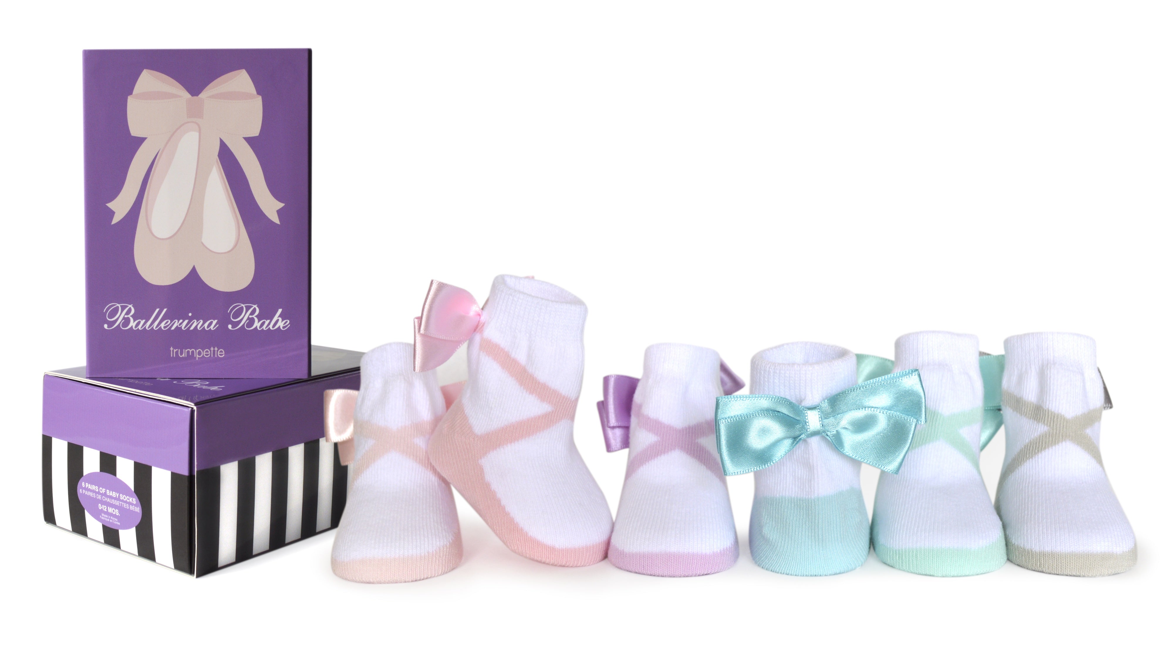Your prima ballerina will be dancing her way into style in our six pairs of pastel ballerina babe baby socks adorned with a matching satin bow in a gift box.