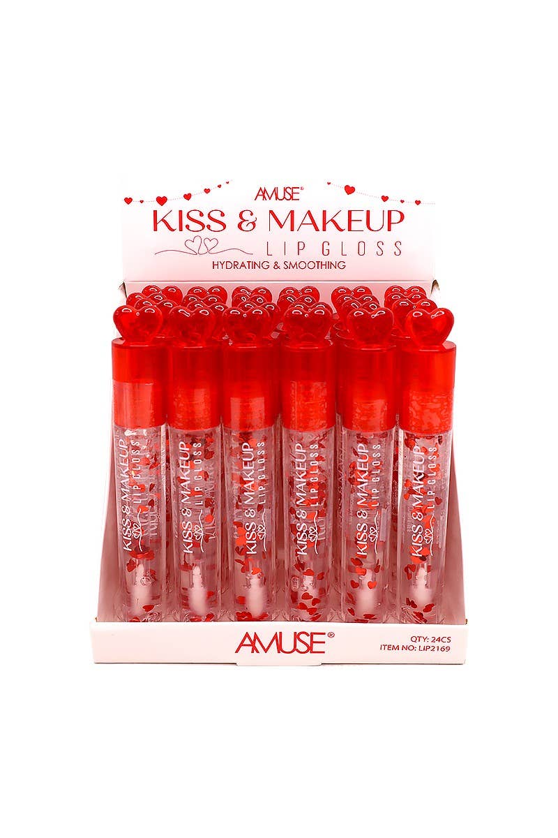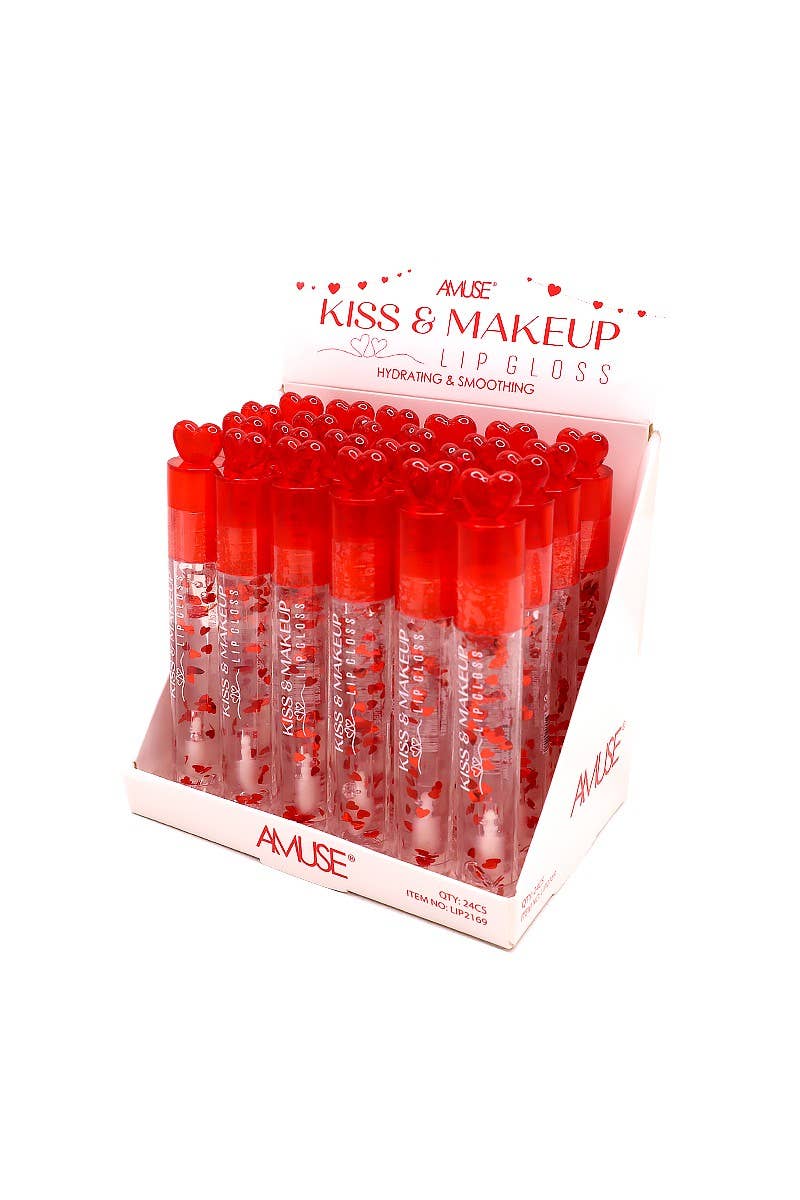 A hydrating and smoothing formula that keeps lips moisturized and soft. High shine finish. Small red hearts in gloss.
