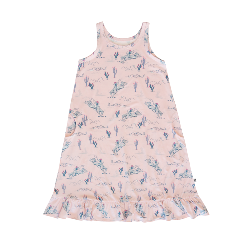 The Summer Boho Dress screams comfort! Silky fabric finished in a loose-fitting silhouette with peek-a-boo pockets and ruffle trim. She'll become a daydream believer overnight.