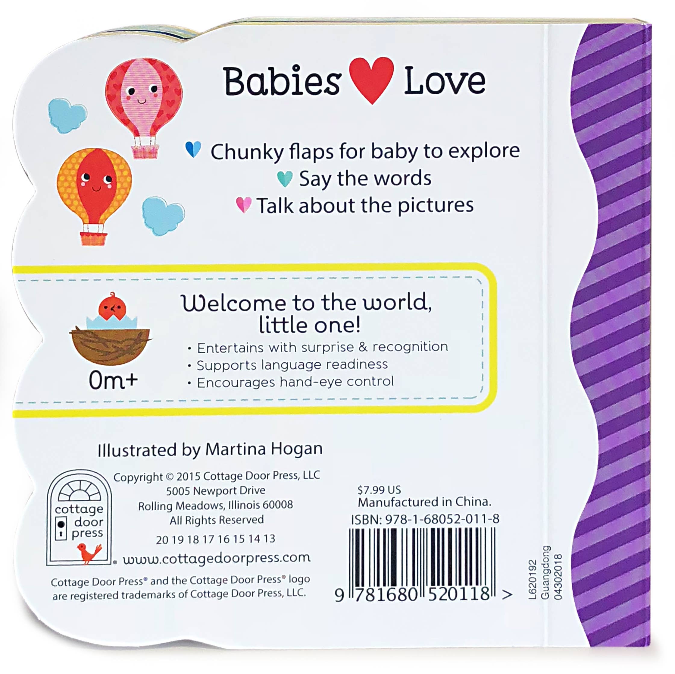Surprise and delight the baby with bright artwork and special treats under each flap.
