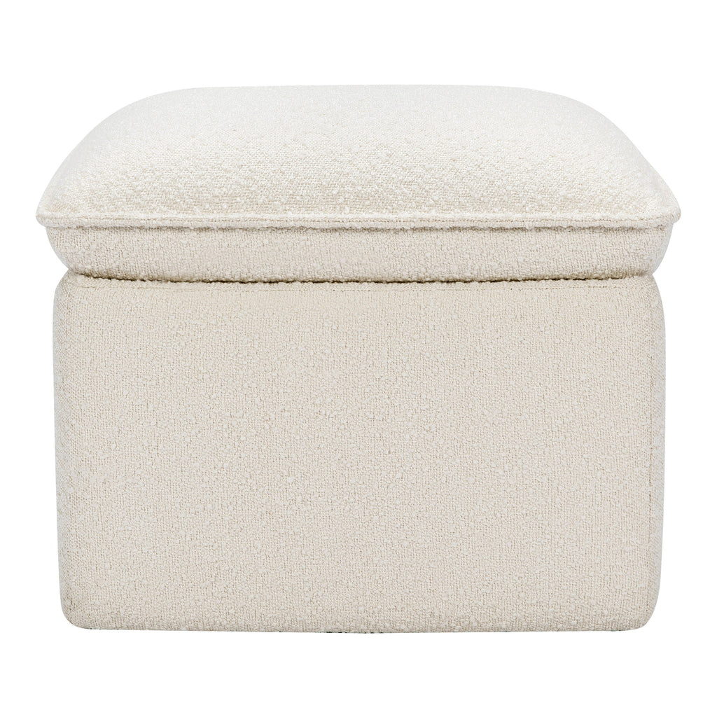 The Cali Storage Ottoman is the perfect blend of style and function. This versatile piece has ample storage for all your baby's extra toys, blankets and more. The easy to lift lid is supported by a soft open and close mechanism to help prevent little fingers getting caught. Upholstered by hand in our eco-performance fabric, this trendy ottoman can be paired with the Cali Swivel Glider to create a statement piece in your nursery or home.