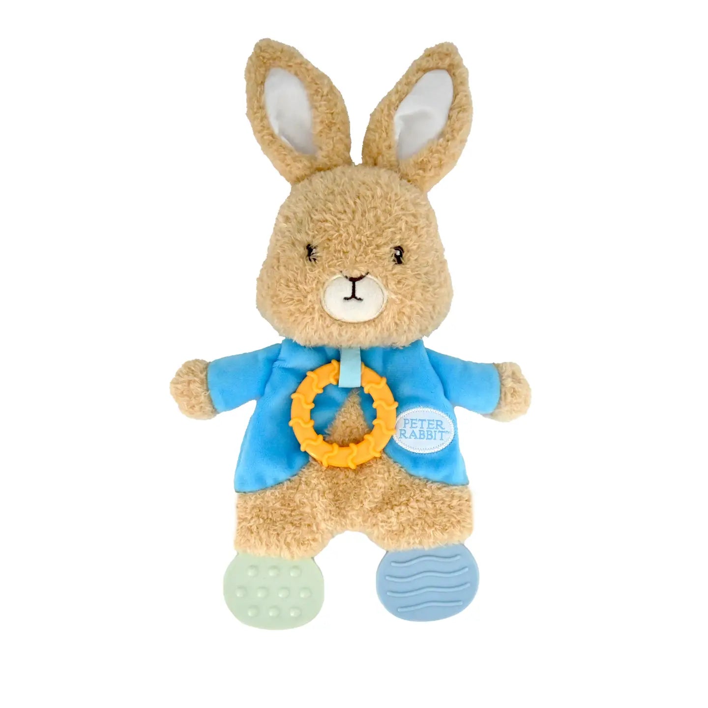 Keep baby entertained, happy, and soothed with this adorable blanky featuring crinkle material to perk up little ears and bpa free teethers to soothe achy gums. This cute baby essential features peter rabbit in his signature blue jacket. It is a comforting pal and perfect for baby showers and new baby welcomes. It is a soothing friend and toy for play in a car seat, stroller, or naptime.