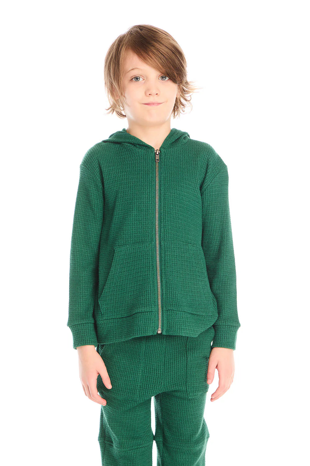 Featuring a roomy hood and handy front pockets, this hoodie pairs effortlessly with the Everest Green Knee Seam Joggers for a playful, coordinated look that’s ready for any adventure.