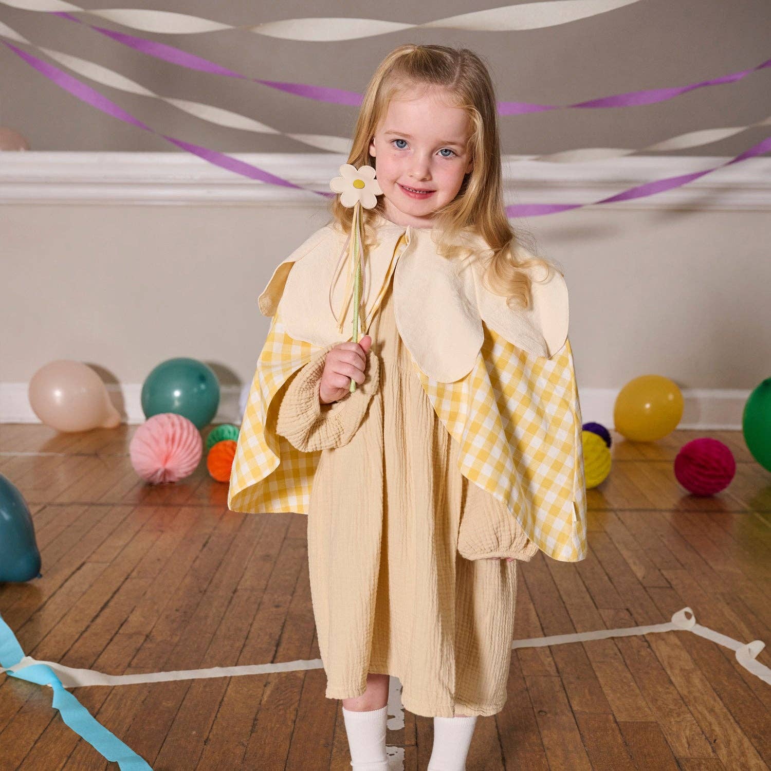 Magic up some flower power with this beautiful daisy wand. With a ribbon-wrapped centre stem and soft coloured grosgrain ribbon streamers, it's perfect for spring and summer adventures, imaginative play, or a fun addition to the dressing up box.