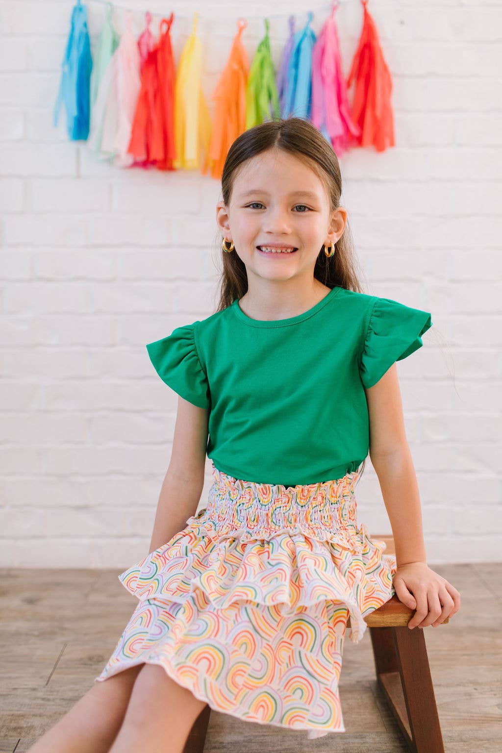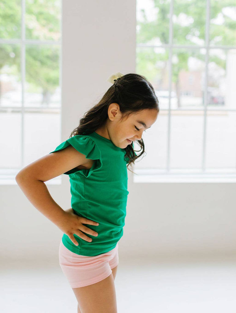 Our Flutter Tee brings a fresh twist to the classic silhouette with its delicate flutter sleeves and comfortable wide neck opening. Crafted from the softest blend of 95% premium jersey cotton and 5% spandex, this tee offers unbeatable comfort that your little one will love to wear again and again.