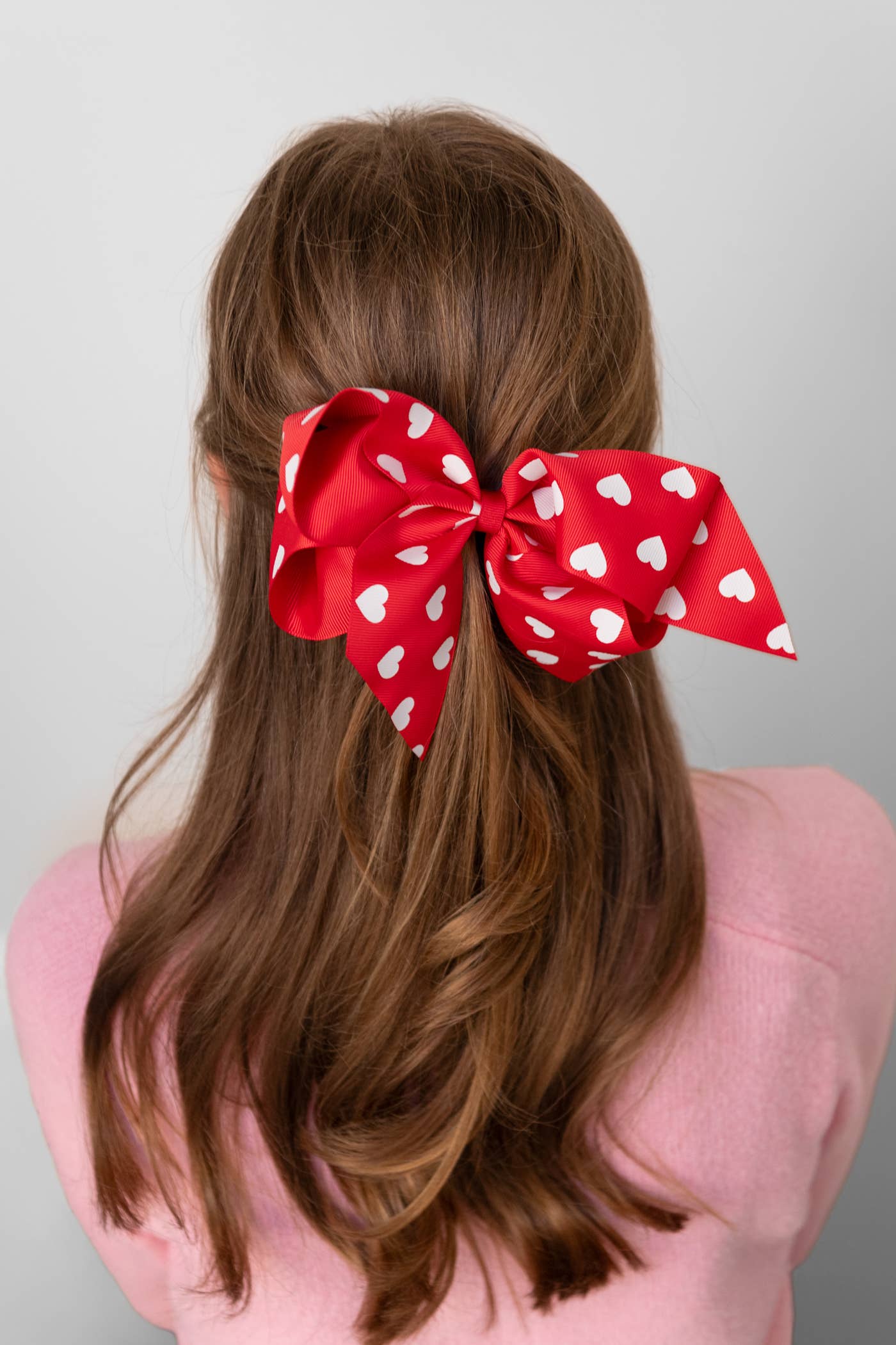 Our exclusive heart print grosgrain bow that is perfect for Valentine's Day and everyday! You get one.