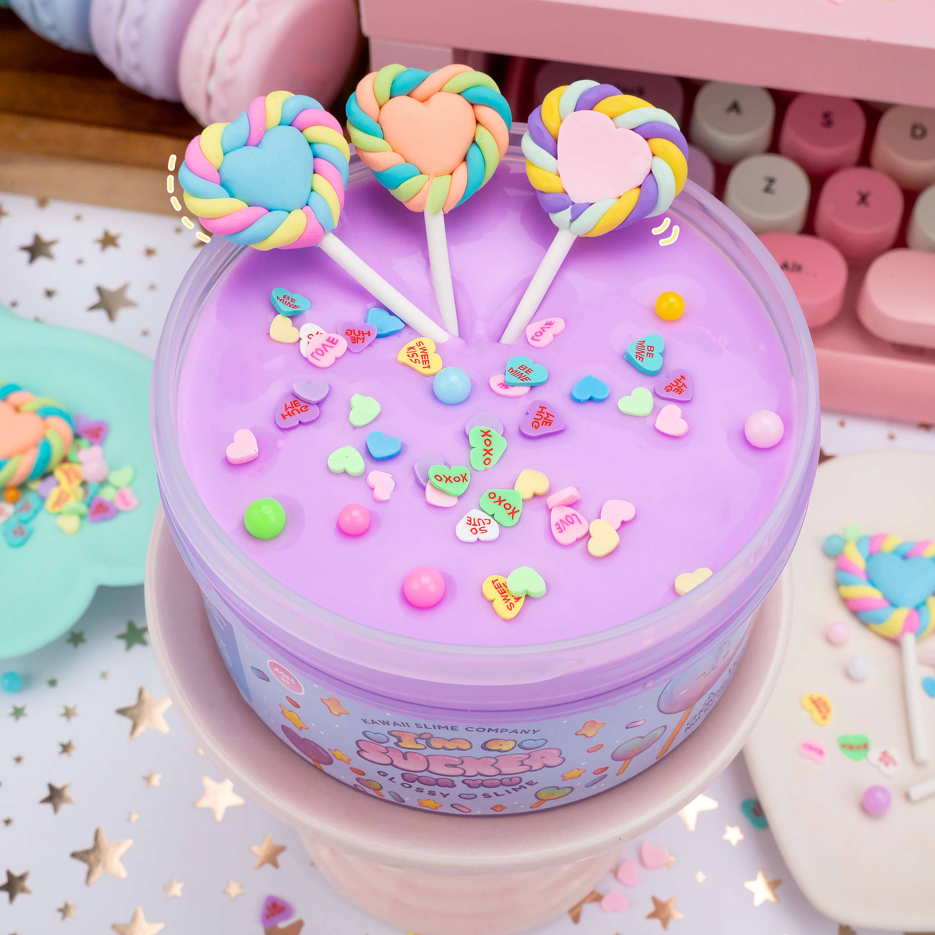 Get ready to be charmed by I'm A Sucker For You Glossy Slime! This enchanting purple glossy slime smells just like lollipops, bringing a burst of sweetness to playtime. Each delightful dome includes whimsical lollipop charms and heart sprinkle mix, perfect for creating your own slimey kawaii candyland. With its irresistibly glossy texture and sugary scent, I'm A Sucker For You Glossy Slime is sure to make anyone's Valentine's day a sweet and whimsical treat!