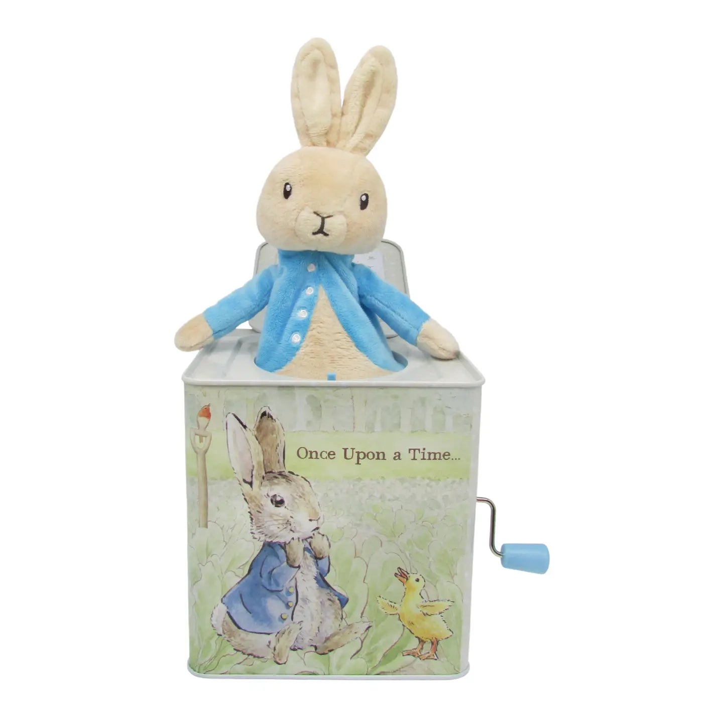 The Beatrix Potter™ Peter Rabbit™ Jack-in-the-Box offers music and action as a soft, blue-coat wearing Peter will delight children when he jumps out of the colorful musical box that features the charming book art on all four sides. The Beatrix Potter™ Peter Rabbit™ Jack-in-the-Box measures 6.50 x 5.25 x 5.50 inches.