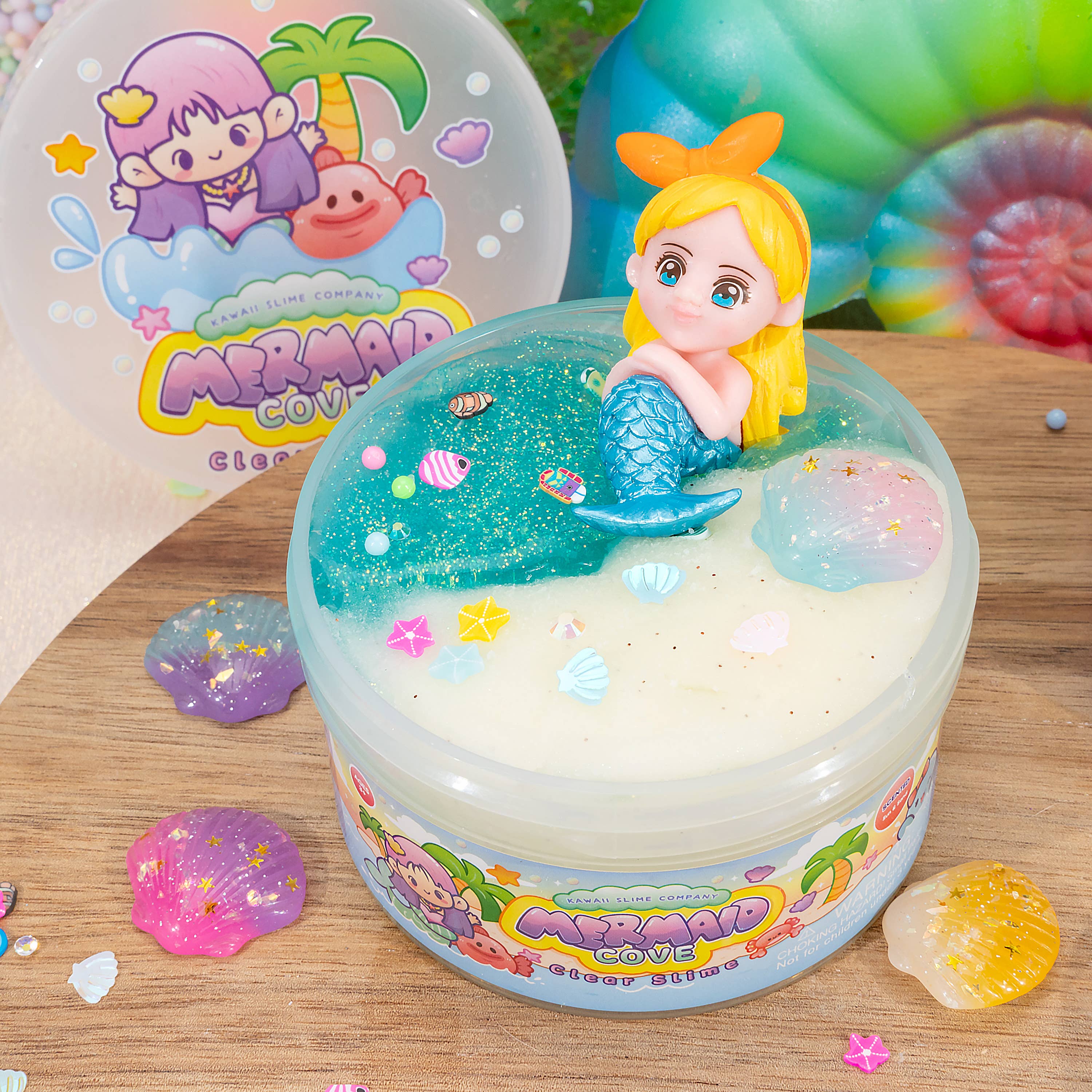 Dive into a sparkling seaside adventure with Mermaid Cove Clear Slime! ๐ This crystal-clear slime captures the fresh scent of Sun & Sand, like warm sunscreen and ocean breezes perfect for your summer daydreams. Its smooth, stretchy texture is filled with a shimmering mermaid charm, a delicate shell charm, and a magical ocean-inspired sprinkle mix to make every squish feel like a splash of seaside magic. Stretch, squish, and let Mermaid Covewhisk you away to your own underwater paradise! ๐
