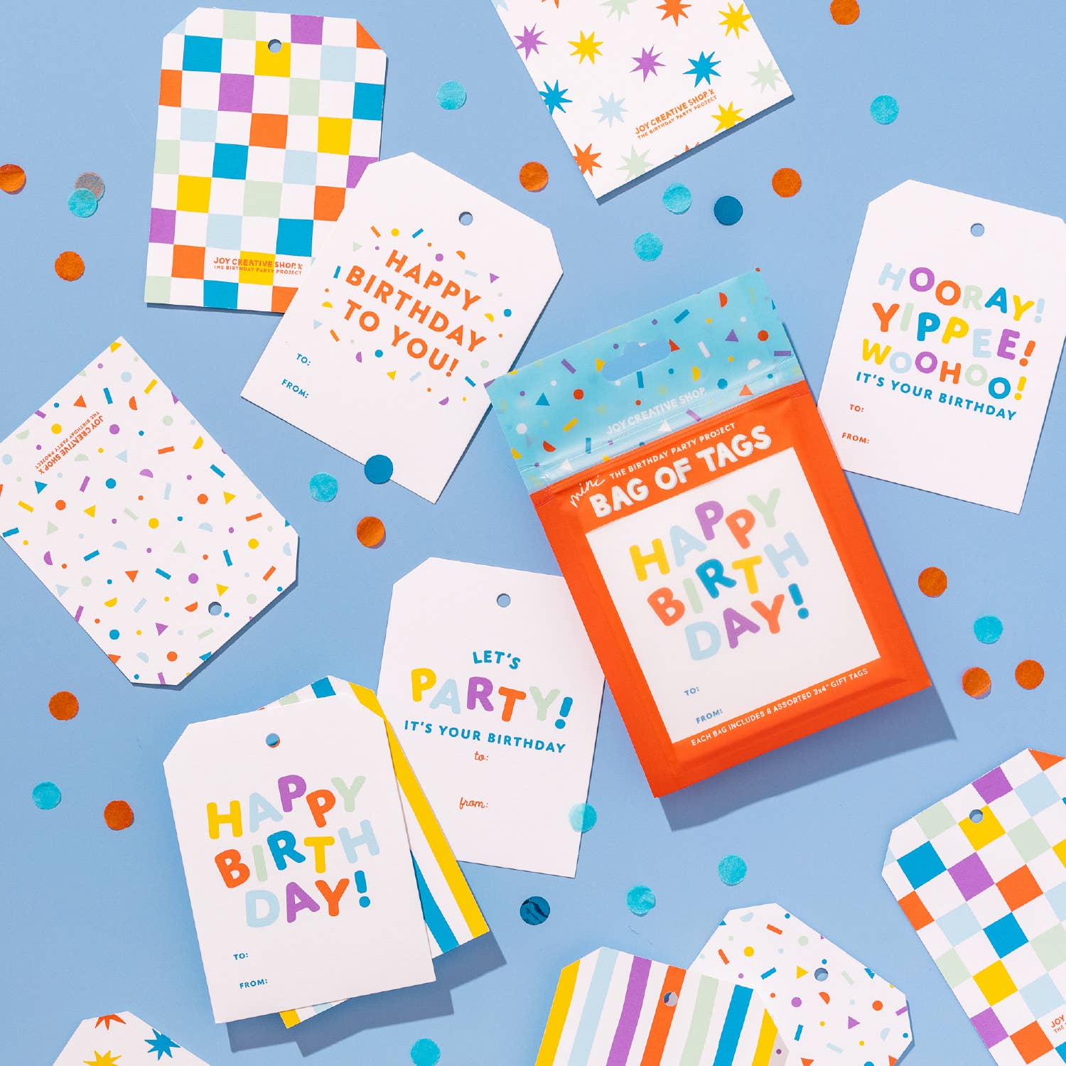 Your new go to for easy and hassle free gift packaging. Our 'Mini' Bag of Tags : The Birthday Party Project edition is the perfect set of 8 assorted gift tags for celebrating birthdays & love! We are proud to partner with The Birthday Party Project and donate a percentage of sales back to their organization with each purchase! Themes: Birthday, Celebrations, Friendship Each Bag includes: 8 3x4" Tags Makes a great gift and perfect addition for your gift wrap closet!
