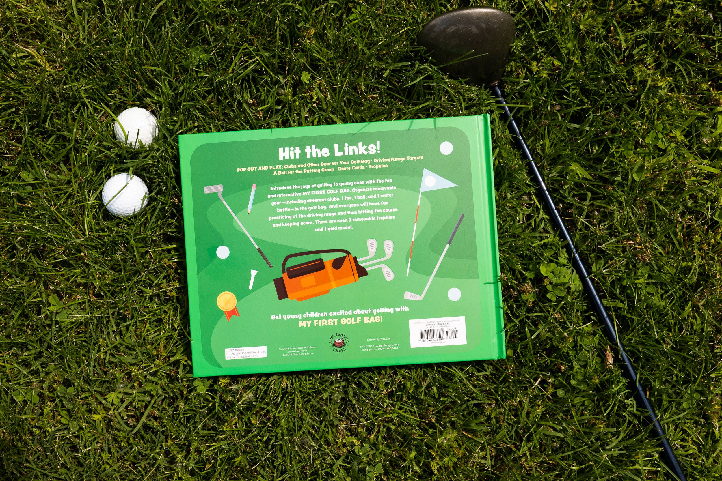 Introduce your little one to the joys of golf in this interactive activity book full of fun! Use the cardboard cut outs to pack your golf bag, rack the sand trap, and hit your ball for a hole in one!