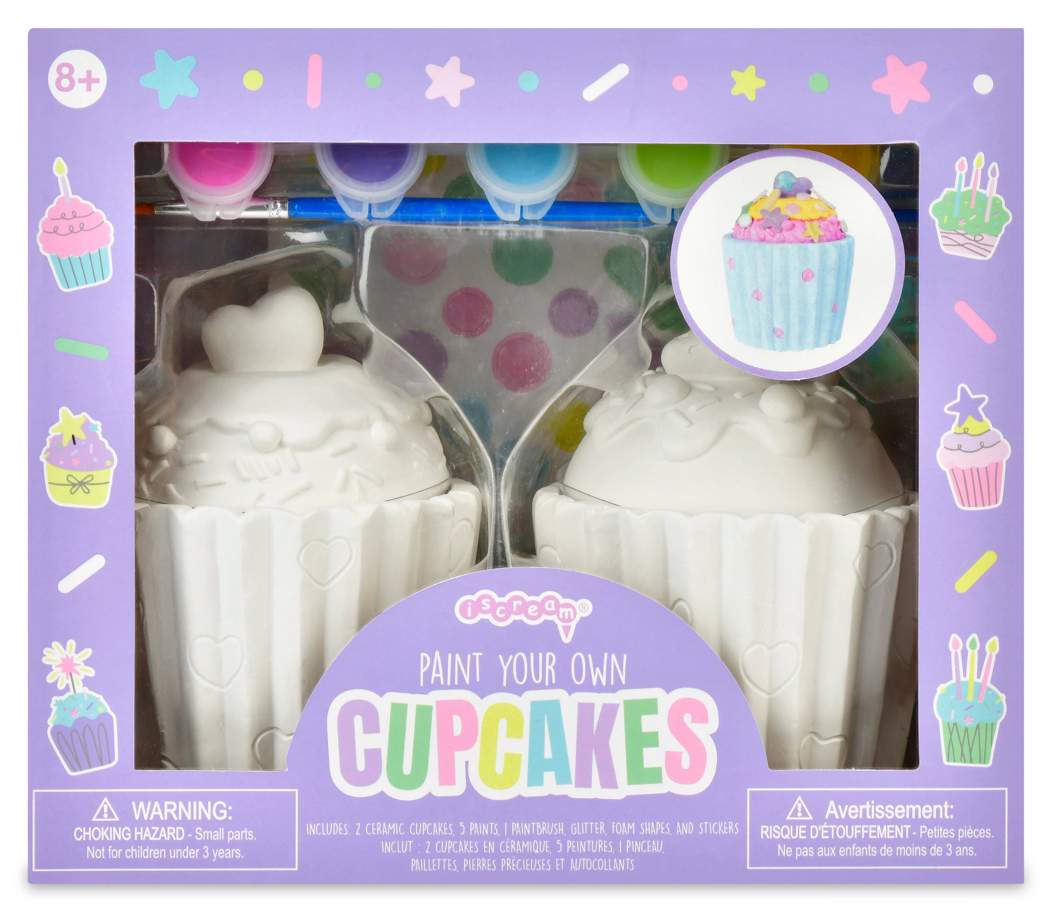 Get ready for the sweetest craft session ever! This Paint Your Own Cupcakes kit by Iscream is the ultimate activity and keepsake, making it a perfect birthday gift or the coolest party favor around. It's packed with everything needed for a dazzling project: two ceramic cupcakes ready for color, five vibrant paint colors, a paintbrush, plus tons of fun extras like glitter, foam shapes, and stickers for truly custom creations. It’s decorating fun without the sugar rush! Packaged perfectly for gifting (8 1/2" w x 5 3/4" h x 4" d), it’s an ideal birthday present or a memorable favor that lets every guest take home their own masterpiece!