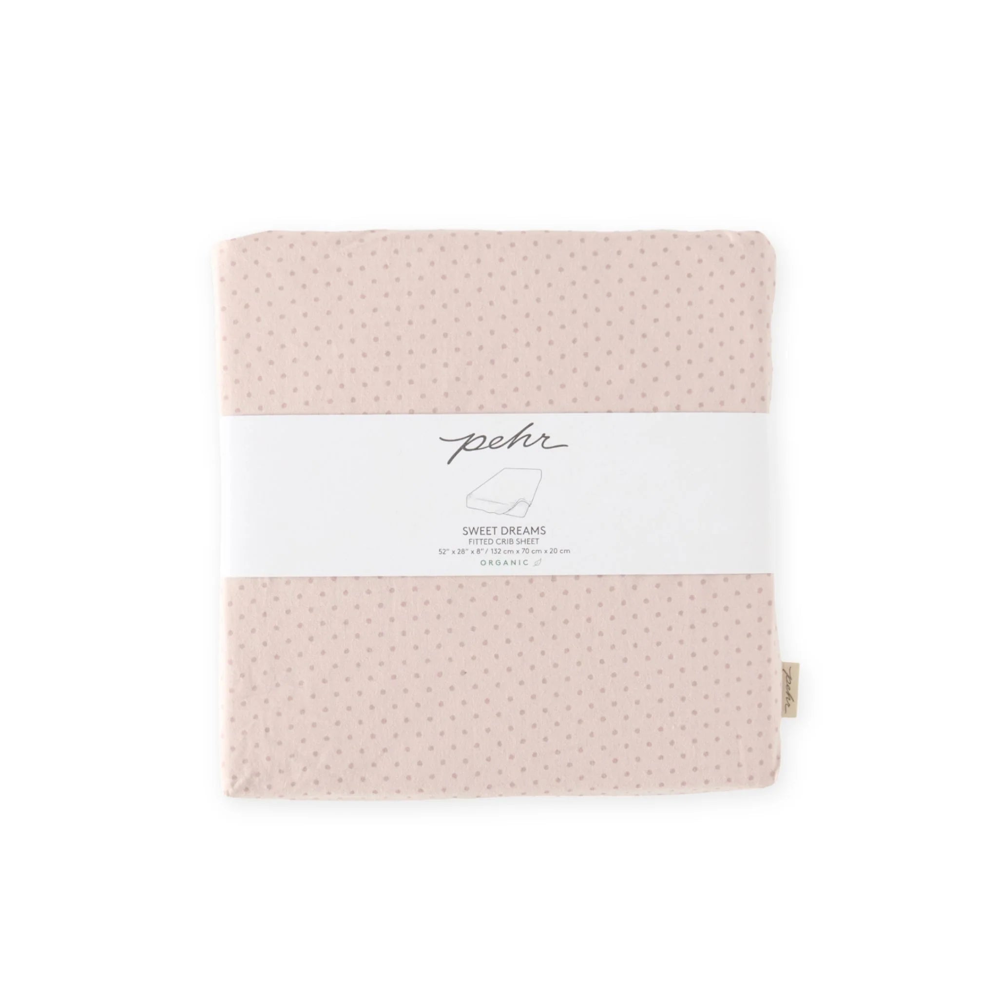 Soft, breathable, and made for sweet dreams. Crafted from GOTS certified 100% brushed organic cotton, our Pin Dot Crib Sheet is breathable, gentle on sensitive skin, and stays soft wash after every wash. The subtle pin dot pattern adds a calming touch to any nursery, while the fully elasticized bottom seam ensures a snug, safe fit for standard crib mattresses up to 52" x 28" x 8". Pehr with our Pin Dot Blanket, Pin Dot Swaddle, and Stargazer Mobile for a matching nursery look.