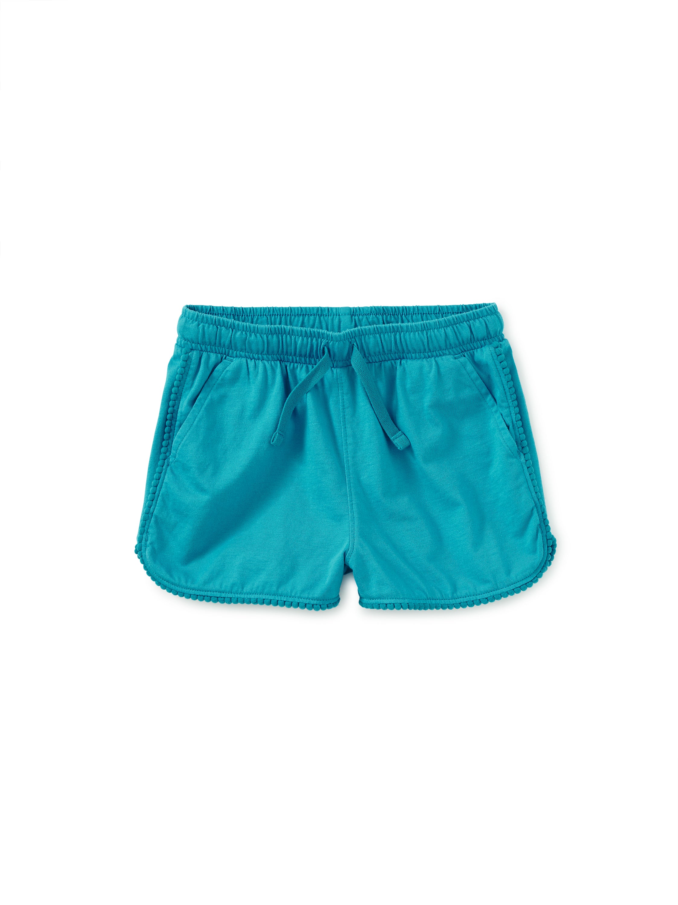A warm-weather staple designed for easy days and endless play. These Pom-Pom Shorts add a cheerful pop of color and playful trim to a comfortable, wear-anywhere silhouette. Thoughtfully made for movement and built to last, they're meant to be worn often, washed well, and passed along when the time comes. Crafted of soft 100% cotton jersey, they're designed for effortless wear with an elastic waist and functional drawstring. Pair with an artist-drawn graphic tee for an effortlessly fun look all season long.