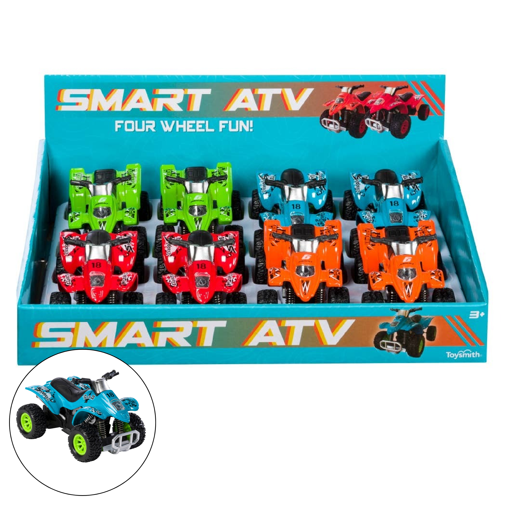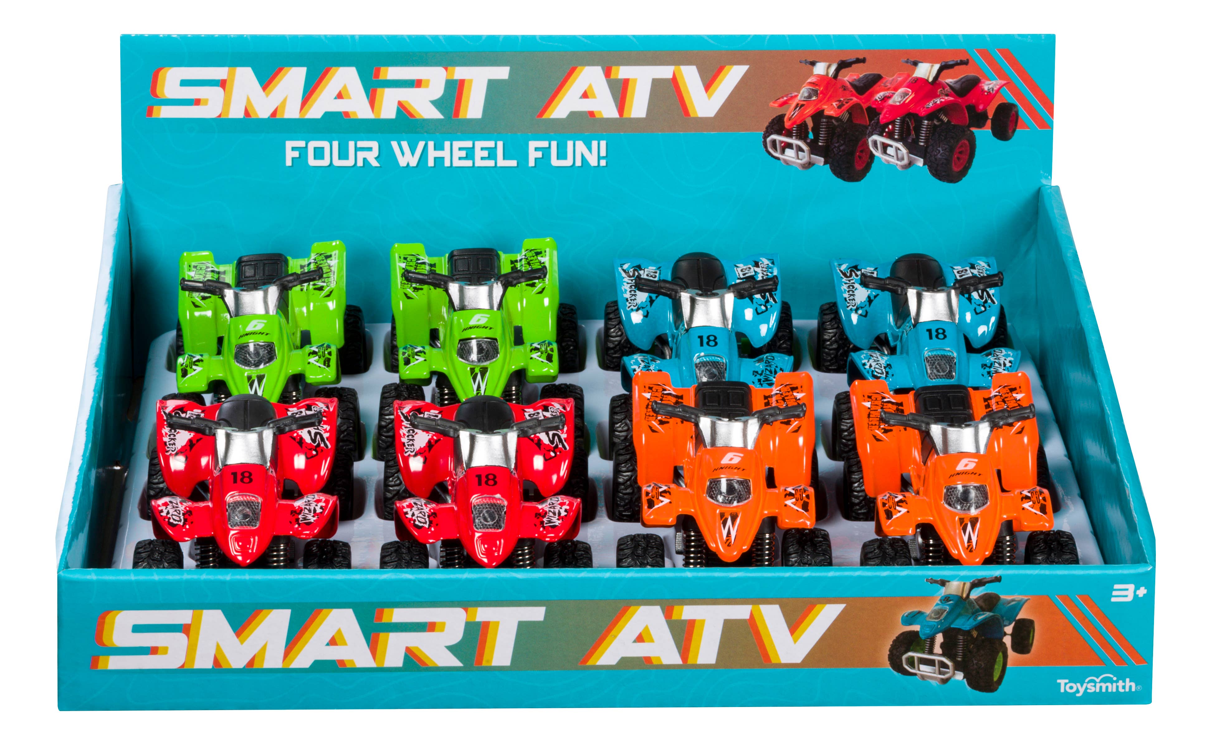 Take playtime off‑road with the Rollin' Smart ATV. Designed for continuous movement, this dynamic vehicle features smart action that automatically redirects when it encounters obstacles, keeping the fun going without interruption. Its bold design and rugged styling make it perfect for adventure‑inspired play, while the interactive movement keeps kids engaged as they watch it navigate around objects on its own. Simply turn it on and let it roll into action. With nonstop motion and engaging features, the Rollin' Smart ATV delivers exciting, hands‑off play that brings energy and movement to any space. - Age Grade: 3+