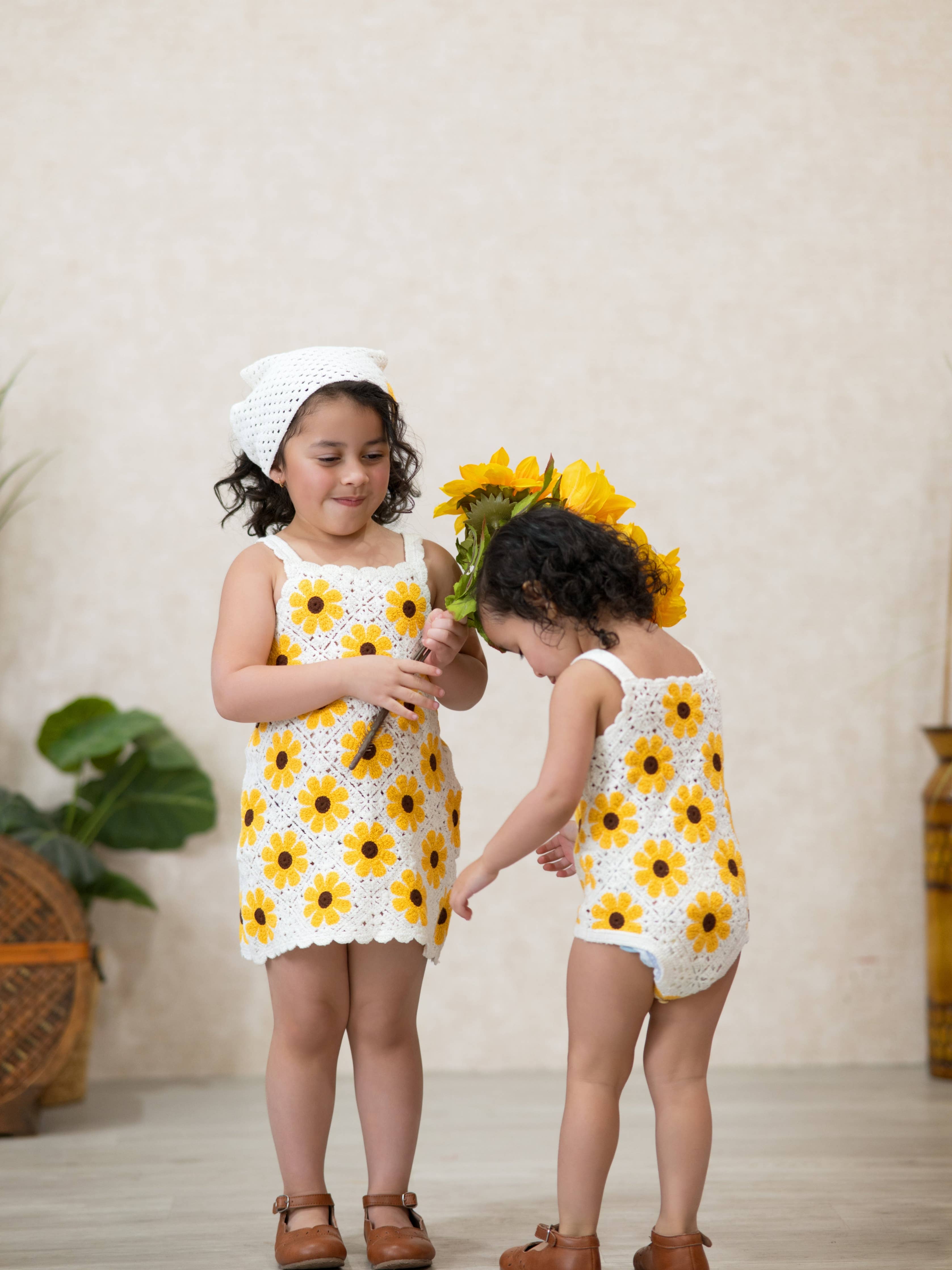 Handcrafted with love, this charming crochet romper features a cheerful sunflower design perfect for warm weather adventures. Crafted from soft, breathable yarn, it keeps your little one comfortable during playtime and special occasions. The one-piece design makes diaper changes and dressing effortless, while the delicate openwork pattern allows for optimal airflow on hot days.