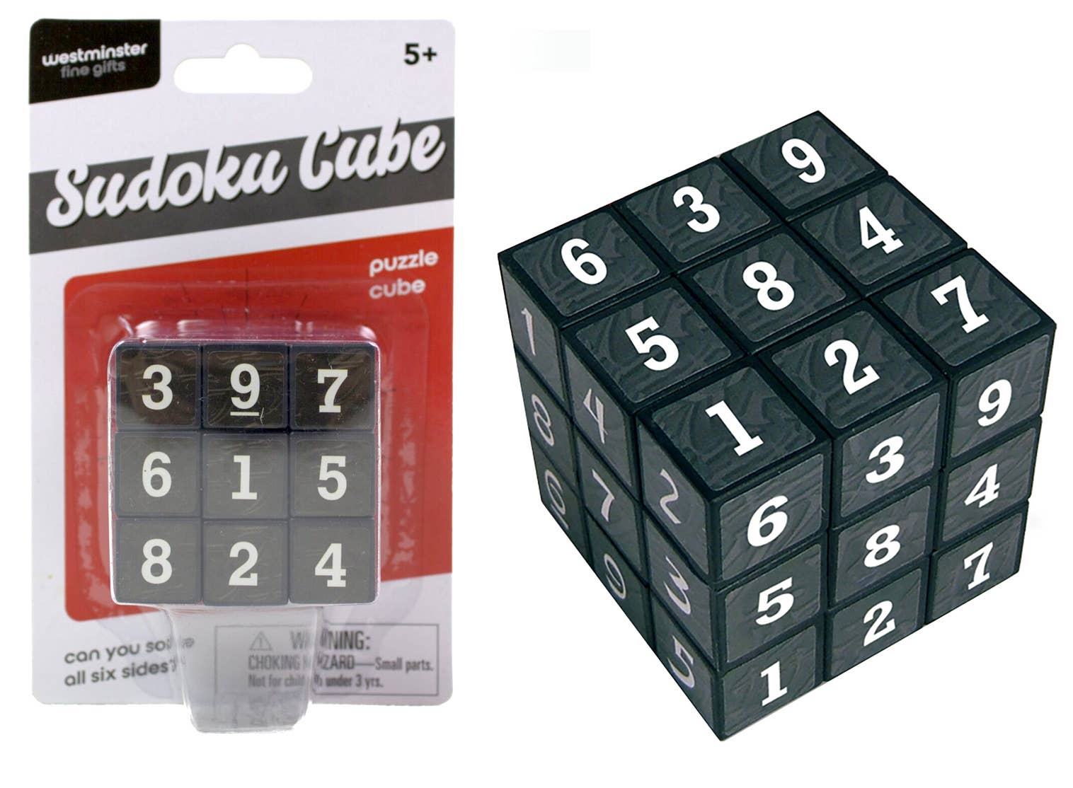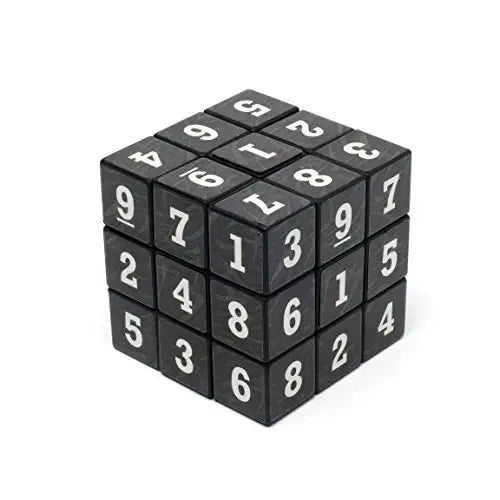 Sudoku On A Puzzle Cube combines the brain-teasing fun of Sudoku with the twisty challenge of a puzzle cube! This 5.5" black cube features 9 numbered squares per side with white numbers 1 to 9. Solve all six sides without repeating numbers—if you can! A fun and educational brain workout for ages 5 and up. Perfect for puzzle lovers. Ages 5+.