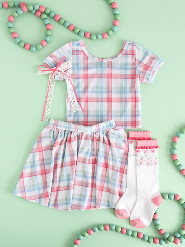 White Fair Isle Scalloped Knee Highs Our scalloped knee high socks are a new fan fave! And for good reason! Perfect for all seasons and styles- with the sweetest scalloped detail. We are certain they'll fit into your little one's wardrobe. Machine wash cold with like colors. Tumble dry low or lay flat to dry. 79% cotton / 19% polyester / 2% spandex